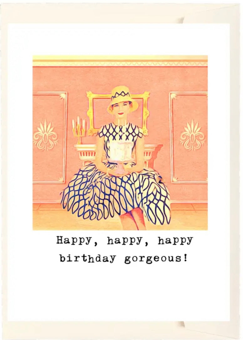 Happy, happy, happy birthday gorgeous! is backordered and will ship as soon as it is back in stock.