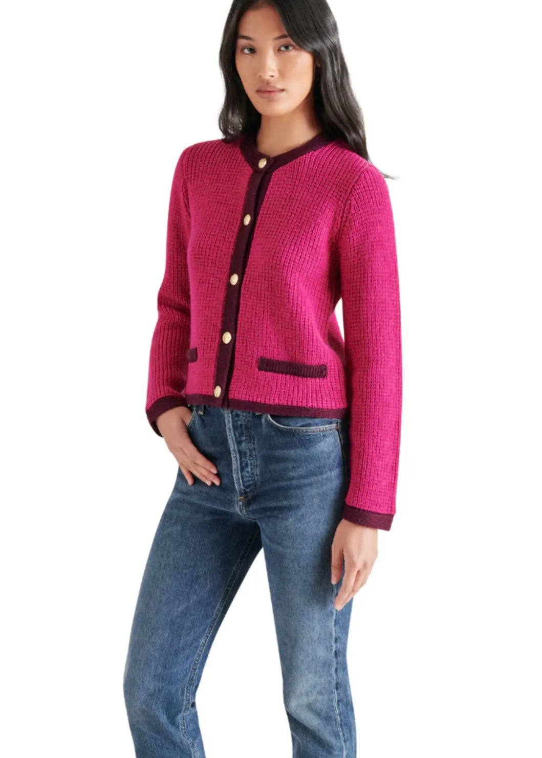 Expertly crafted with a blend of wool, the Fantino Cardigan provides a luxurious and cozy feel. The chunky crewneck design is secured with golden crested buttons, adding a touch of elegance. Stay warm and stylish with this must-have addition to your winter wardrobe.