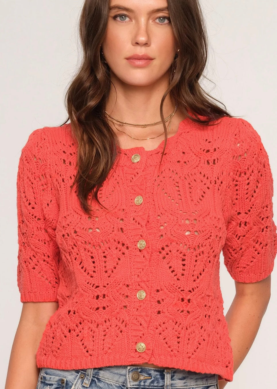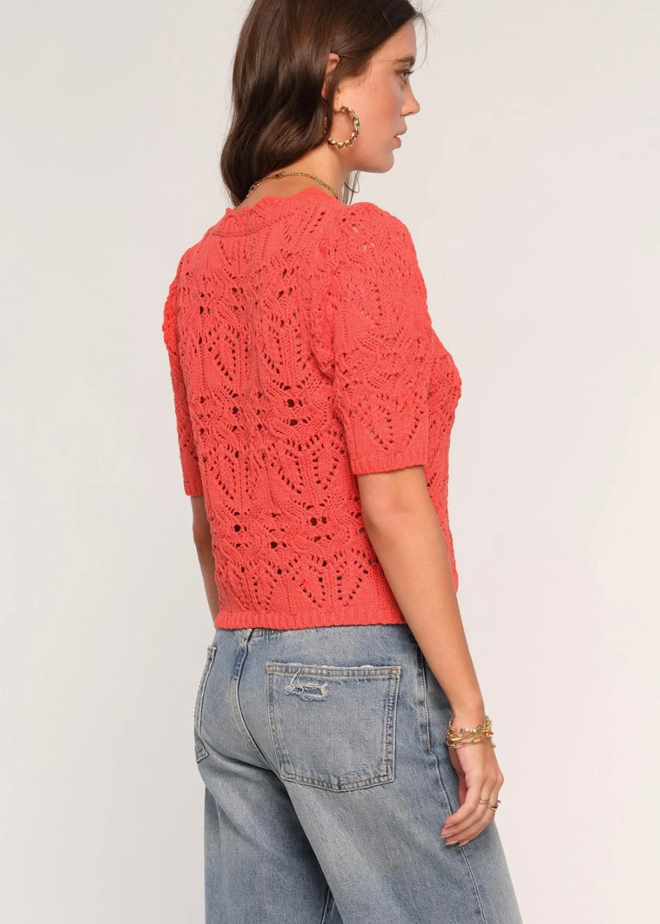 The Letitia Cardi is made from a soft, spring yarn. It features a pretty pointelle stitch throughout the body and a scalloped neck edge. Pair it with jeans for that classic, french girl look.