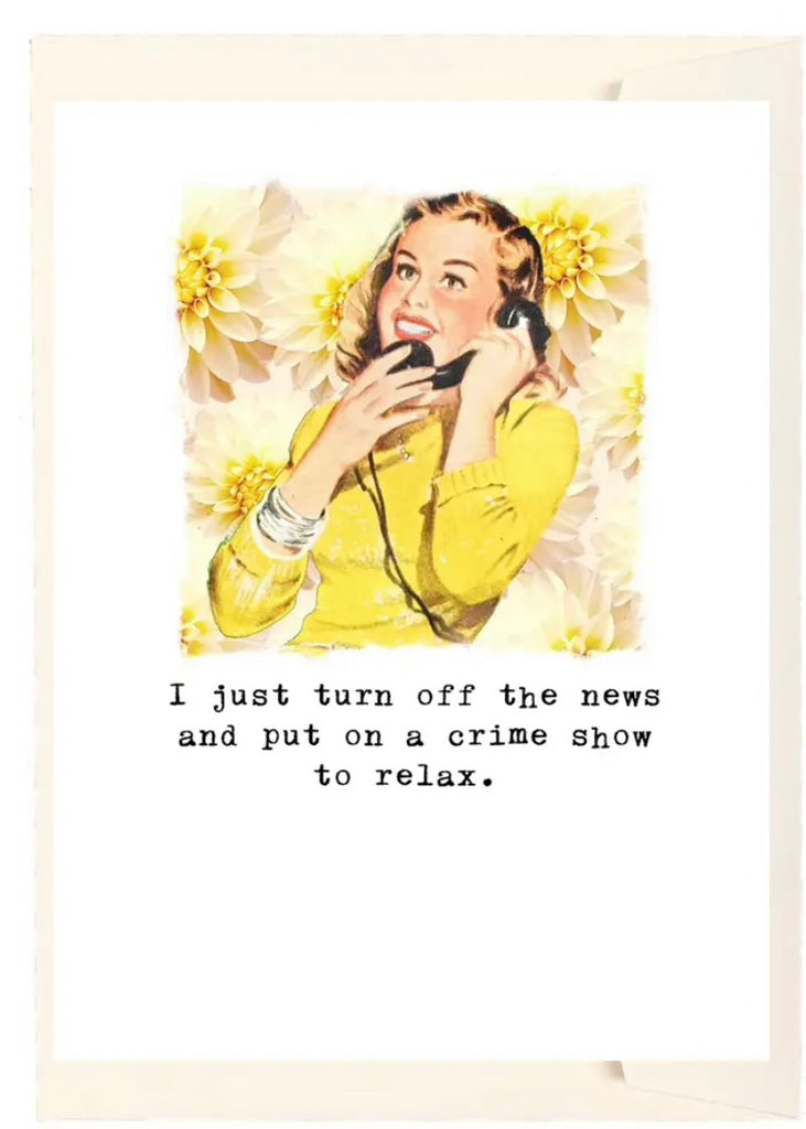 I Turn Off the News and Put On A Crime Show To Relax Card