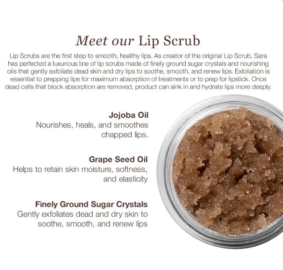 The original lip scrub in vanilla bean - the very first lip scrub flavor Sara ever made. The iconic and inviting scent of creamy vanilla bean is truly a comforting classic. Eliminates dry, flaky skin, immediately leaving lips soft and supple.