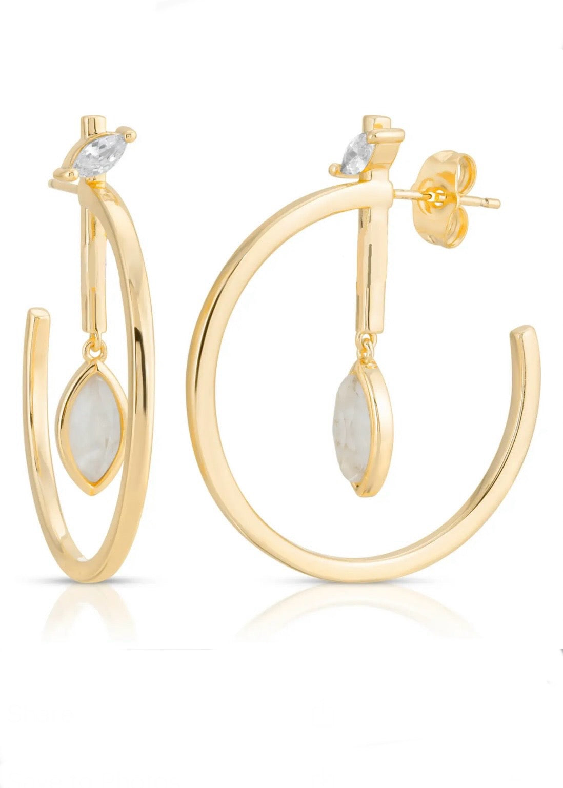 Hoops feature sparkly Marquise CZ's, and Cracked Mother of Pearl stones