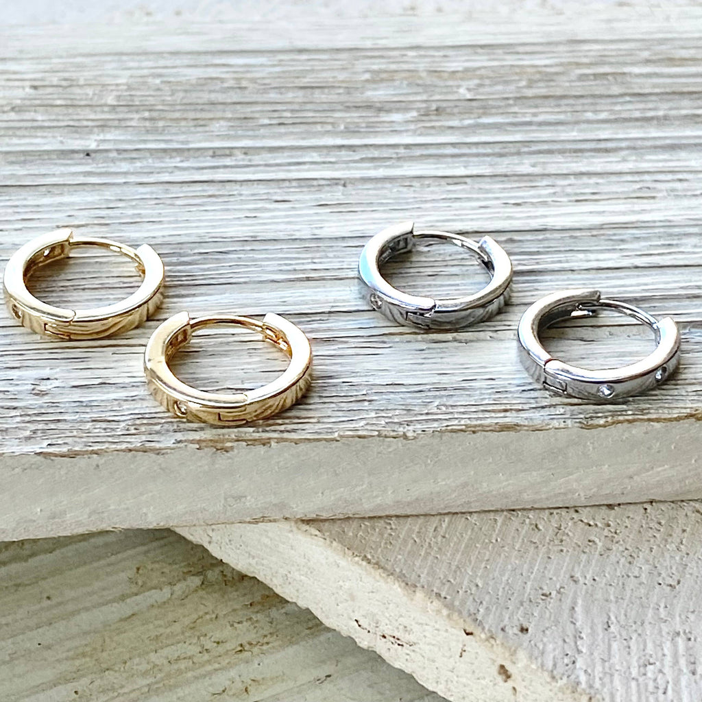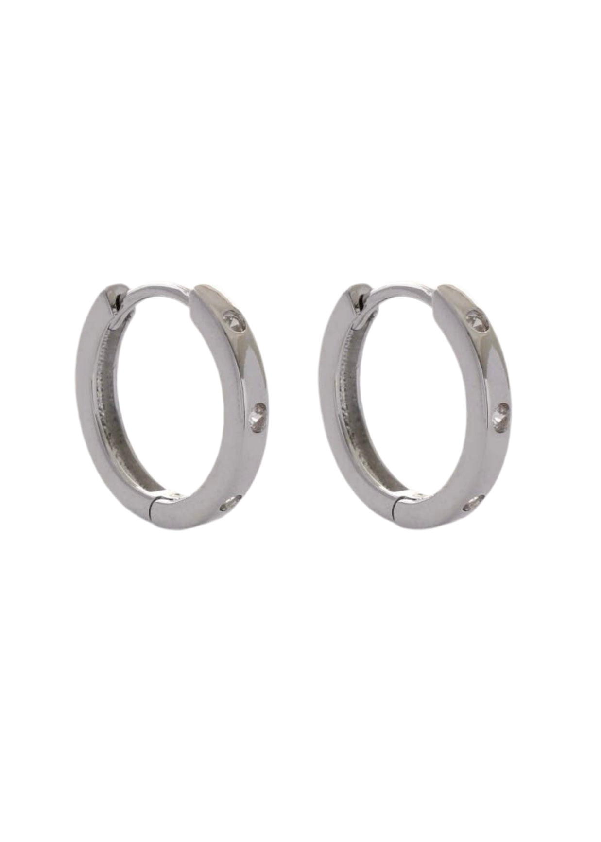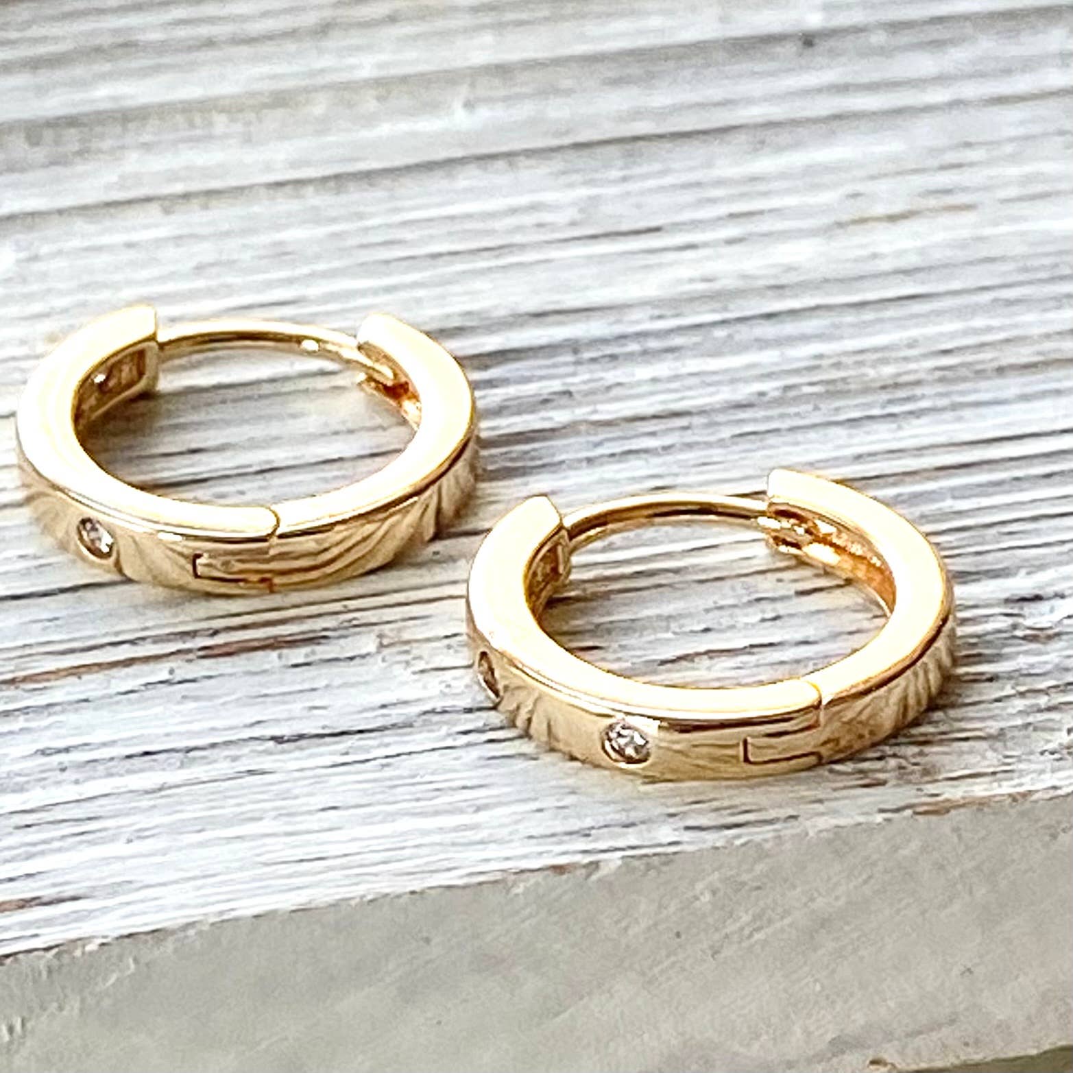 These small huggie earrings are cute and simple. They feature tiny clear crystals.