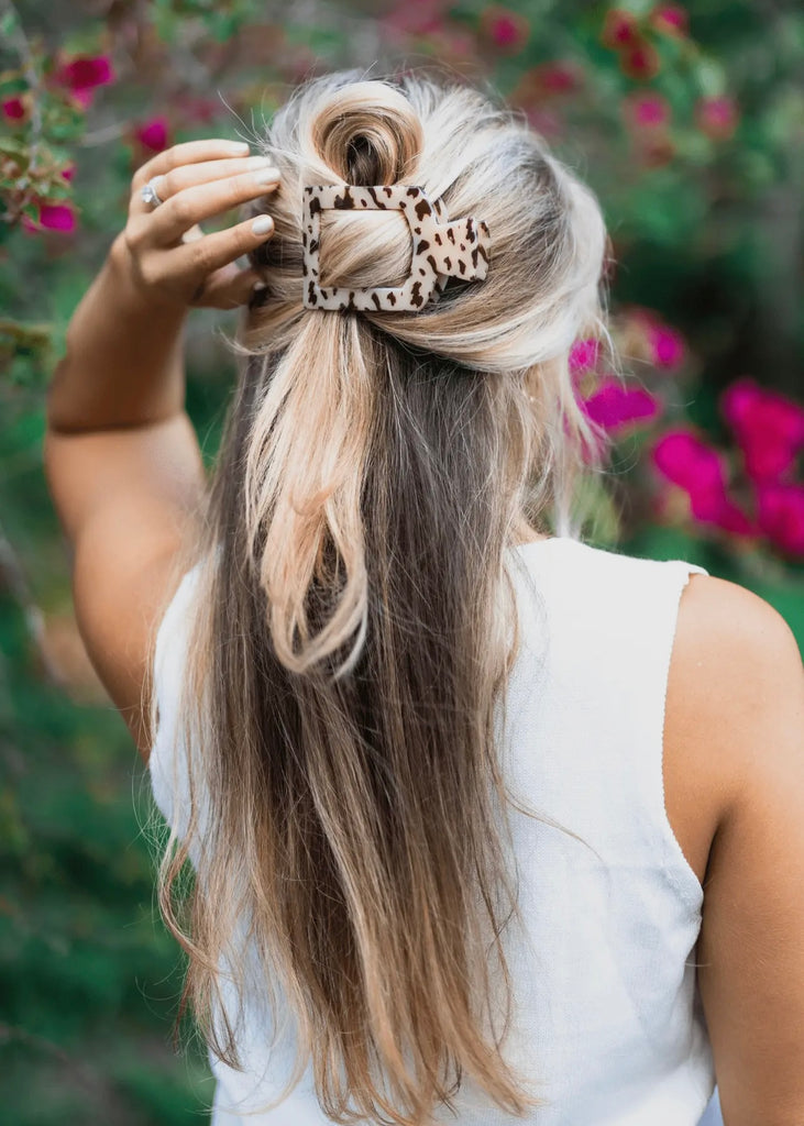 Unwind and relax with the new TELETIES Flat Square Hair Clip! Designed with our same innovative material that is nearly unbreakable, this clip is perfect for lying down, doing yoga or simply laying back without discomfort.