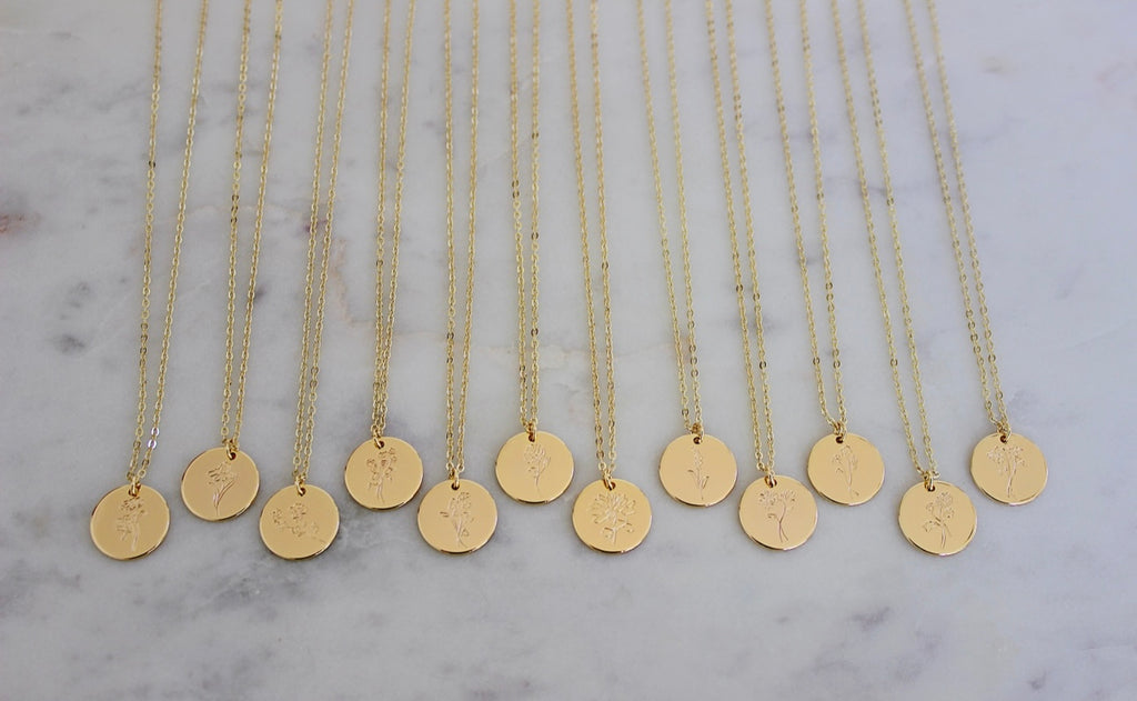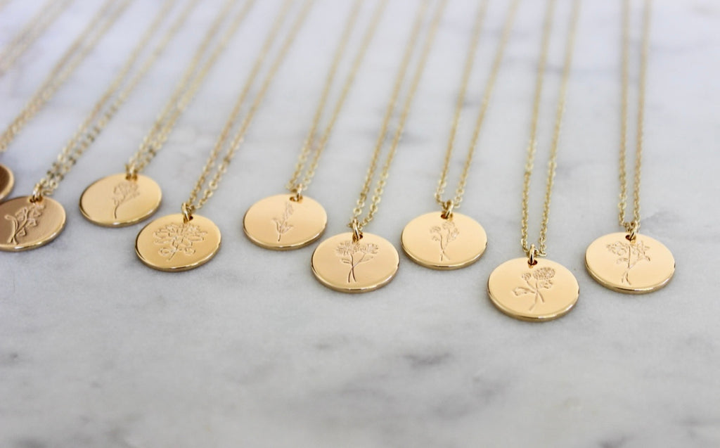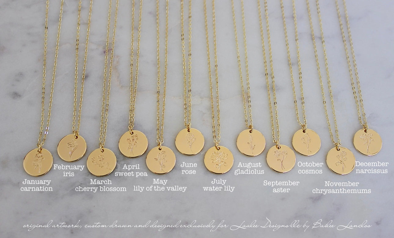 Celebrate your birth month in style with our Birth Flower Necklace! Featuring a 14k gold filled chain and clasp, topped with a 14k gold plated birth flower pendant, this 16.5” necklace is the perfect gift for any occasion.