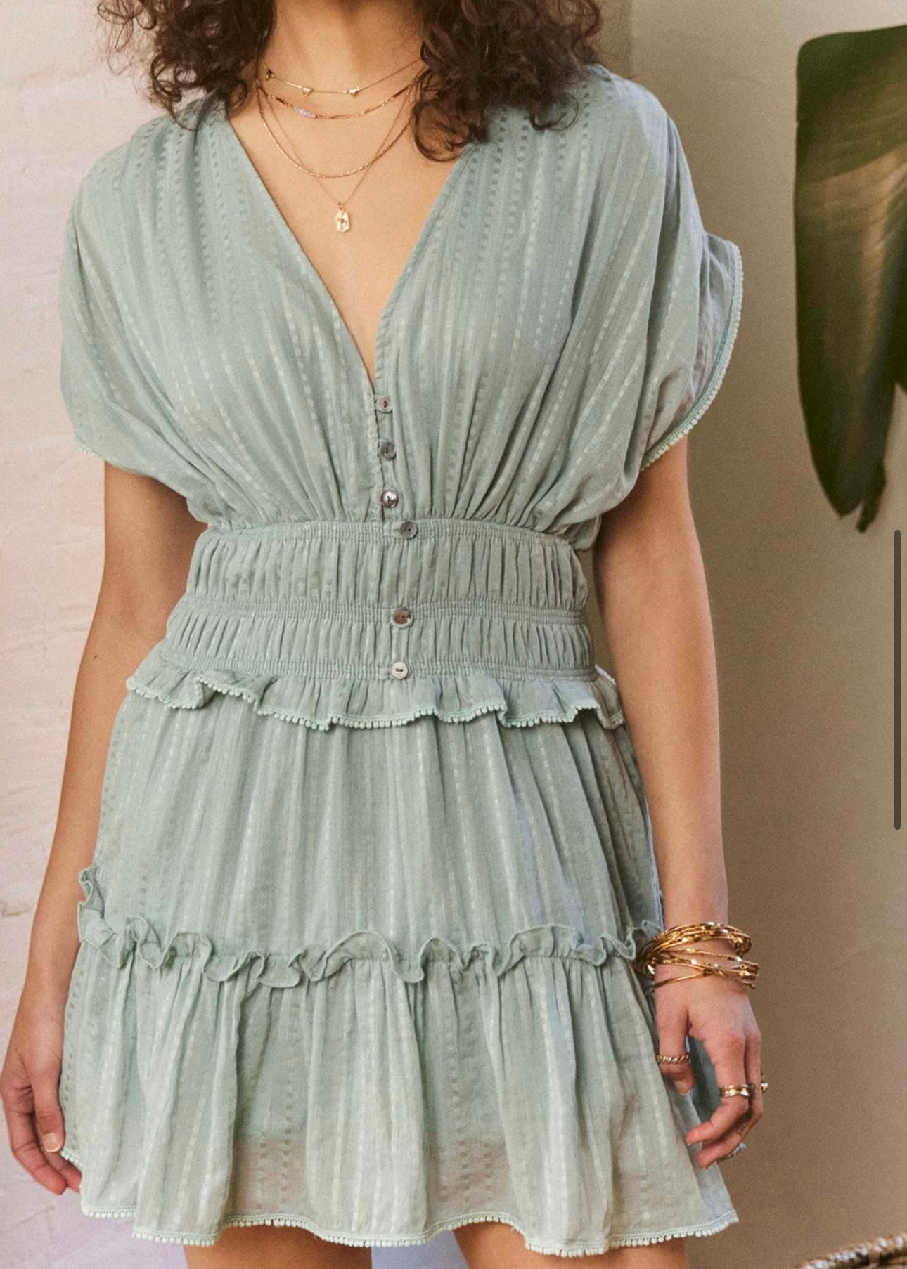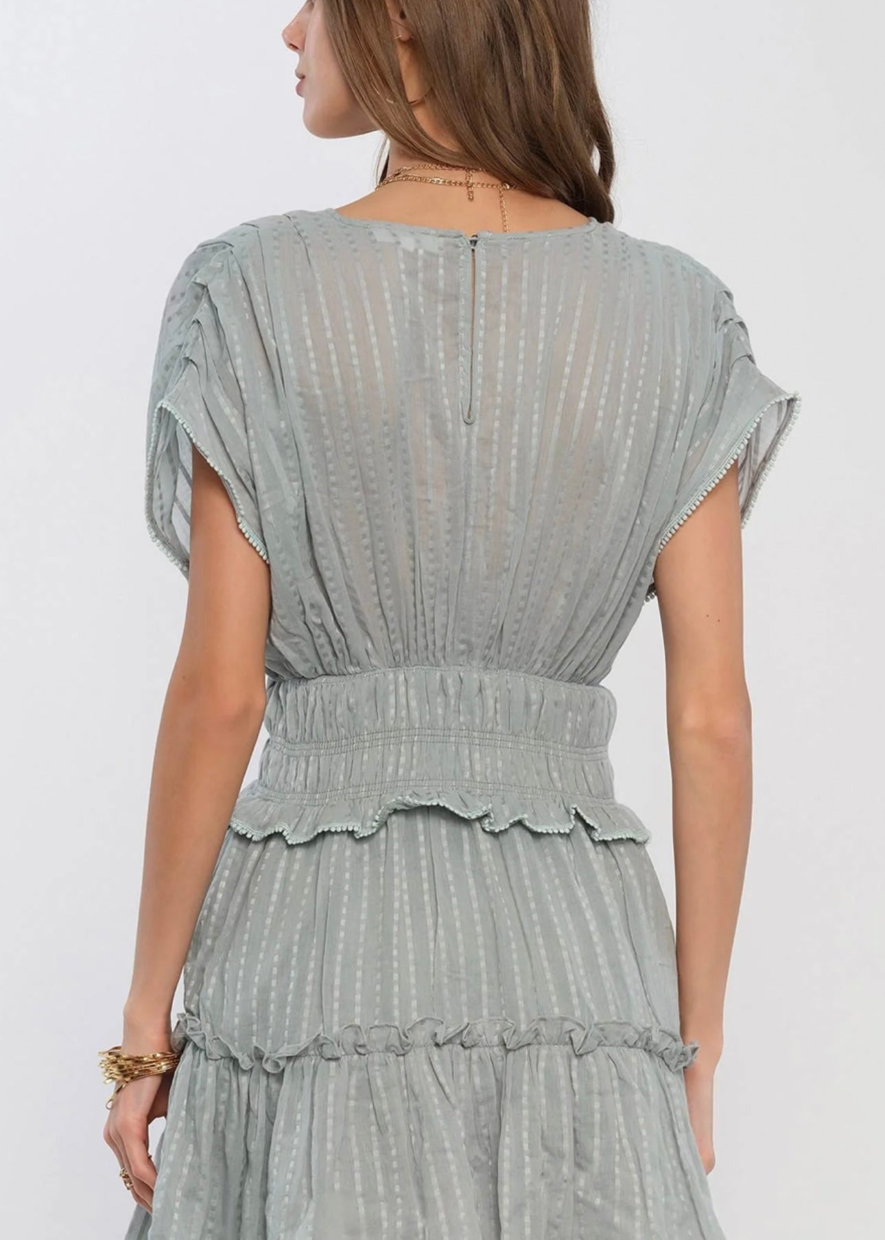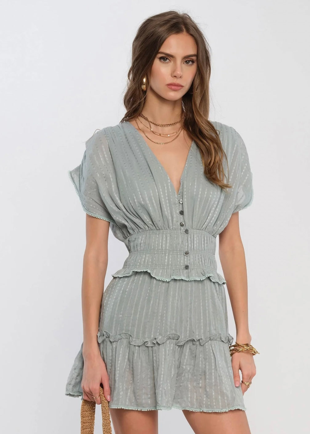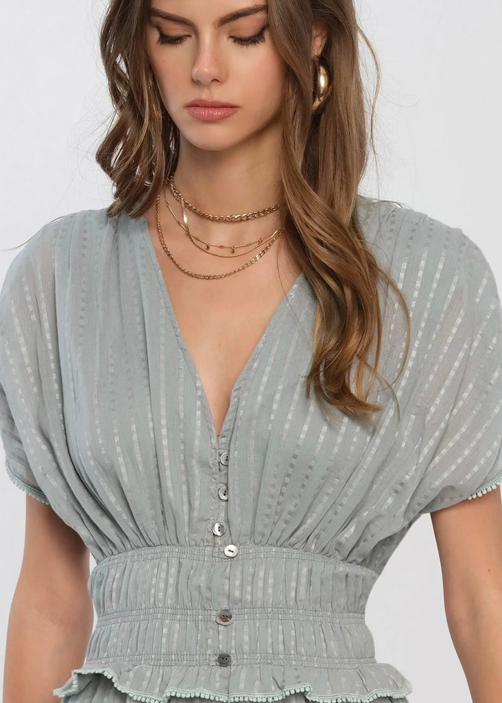 Striped voile Relaxed fit Layered tiers Button down closure