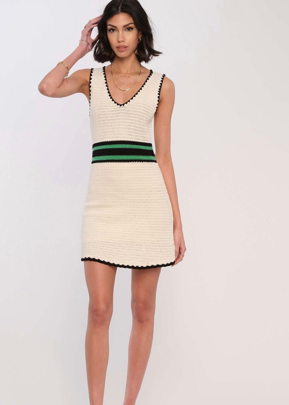 The Nile Dress combines sporty and flirty elements, making it perfect for any occasion. With its fun knit design, this dress can easily be dressed up or down. Complete the look with a pair of sneakers for a comfortable yet stylish outfit.