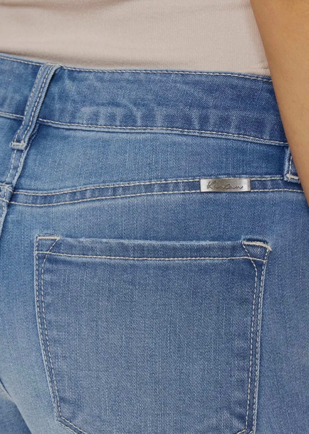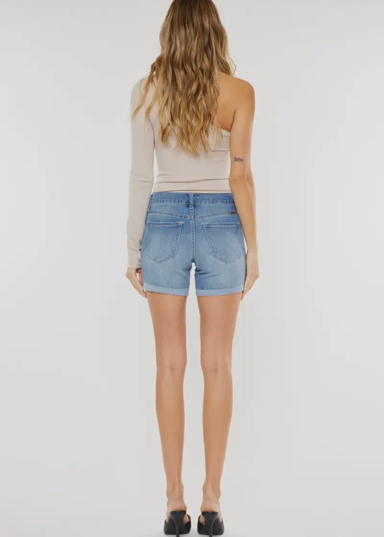 ur Mina Mid Rise Shorts comes in a medium-washed or white color with light fading and whiskering. This classic look pairs great with a cropped top or oversized denim jacket. Features lightly distressed cuffed hems with bar tack, regular 5 pockets, a single button fastening, zip, fly, and a standard belt loop.