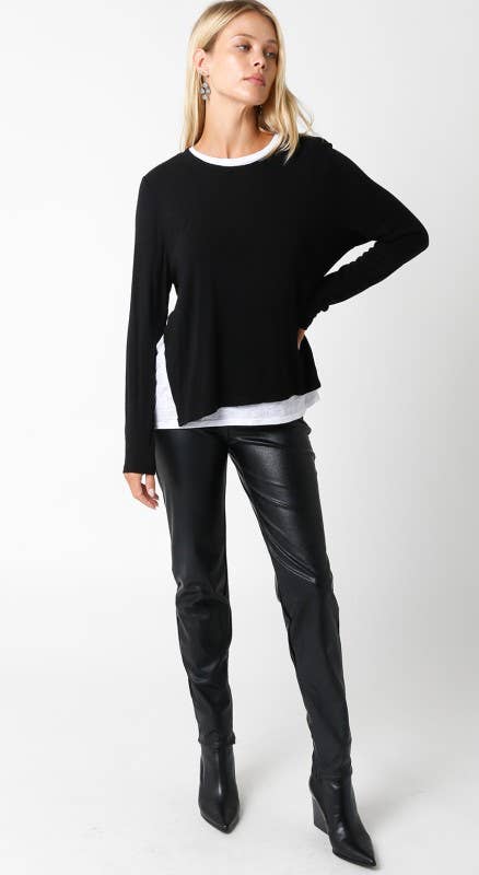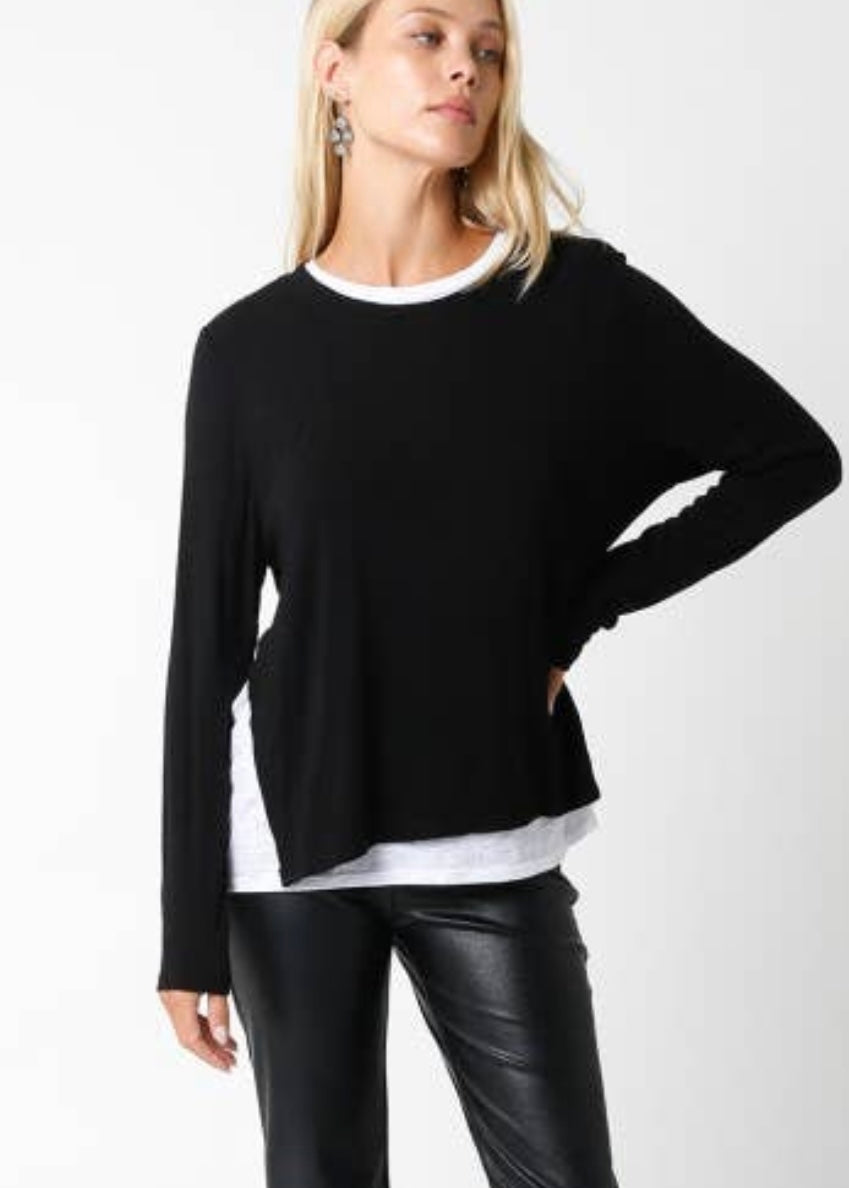 The Layer Me Tunic adds a playful twist to your wardrobe with a black and white color combo, side slits, and a relaxed fit