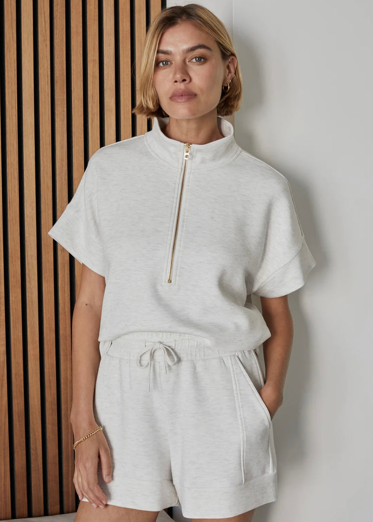 Designed for a relaxed fit, the Ritchie sweat offers effortless style with its short sleeves and comfortable cut. Featuring a mock neck and convenient half-zip, it pairs with our matching shorts and pants.