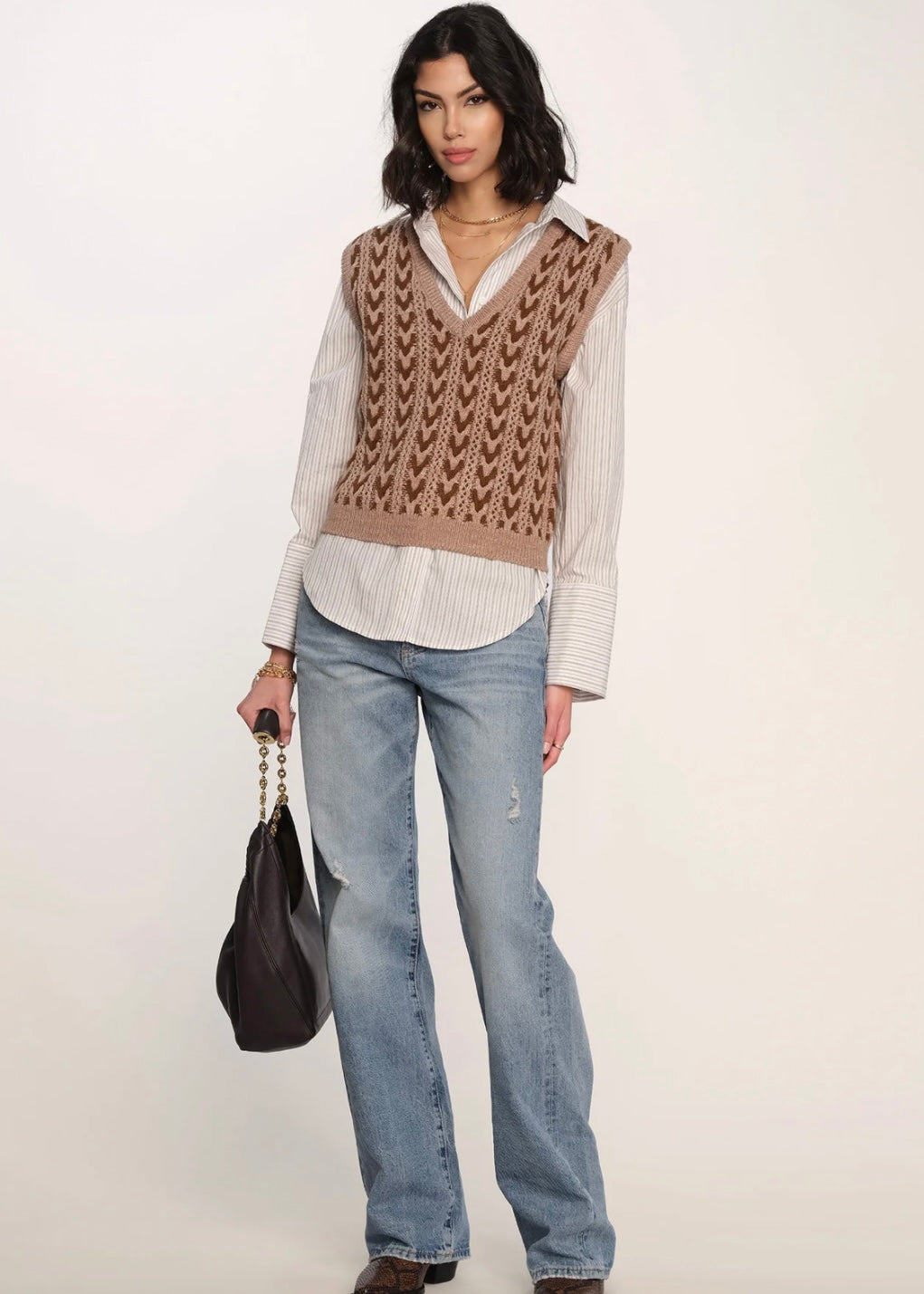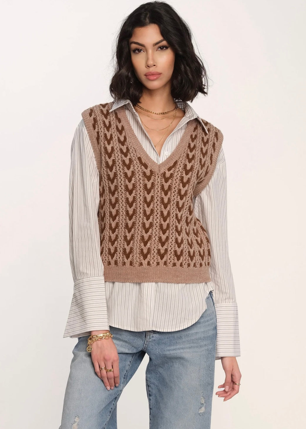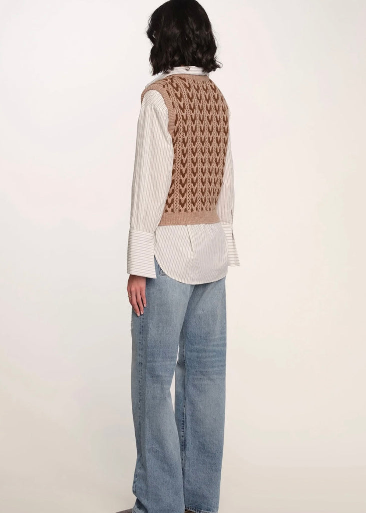 Introducing the Phoenix Vest, inspired by many of our vintage sweaters. It features a v-neck, rib trim, and a contrast herringbone stitch. Wear it alone or layered over your favorite shirt.