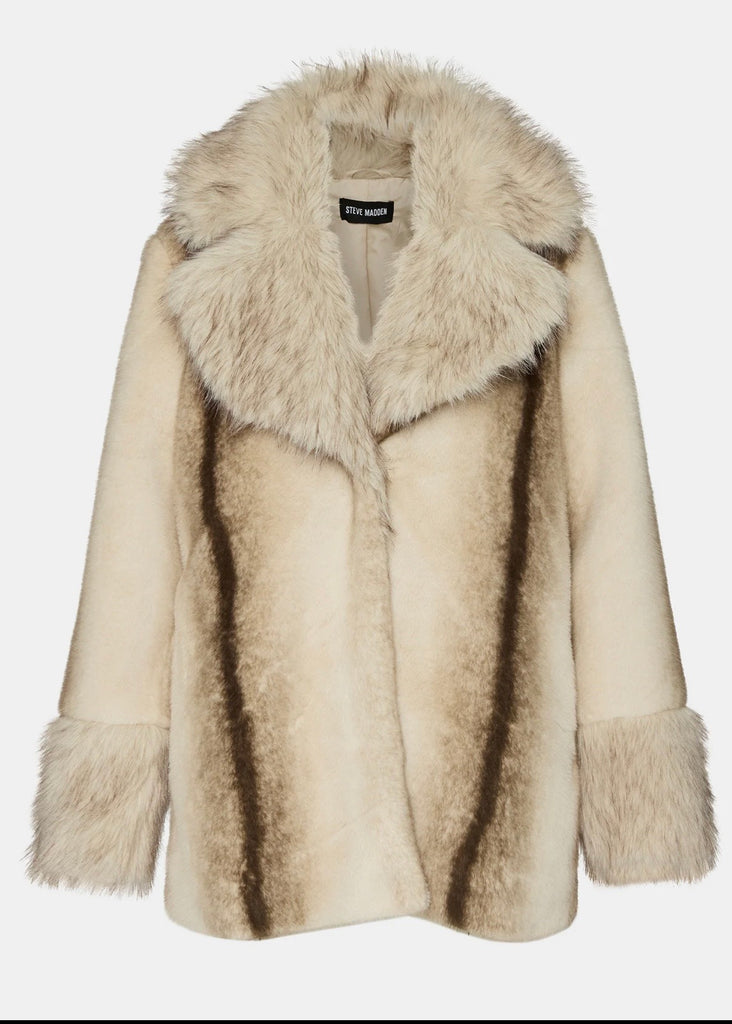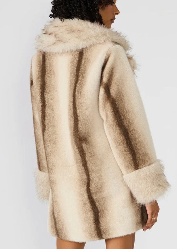 The Carmelita Coat features a long-sleeved design crafted from luxurious faux fur, offering both warmth and style