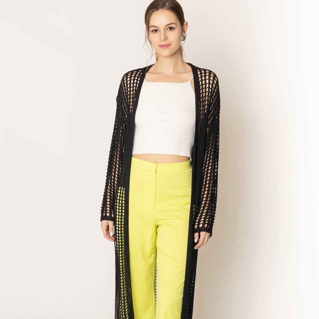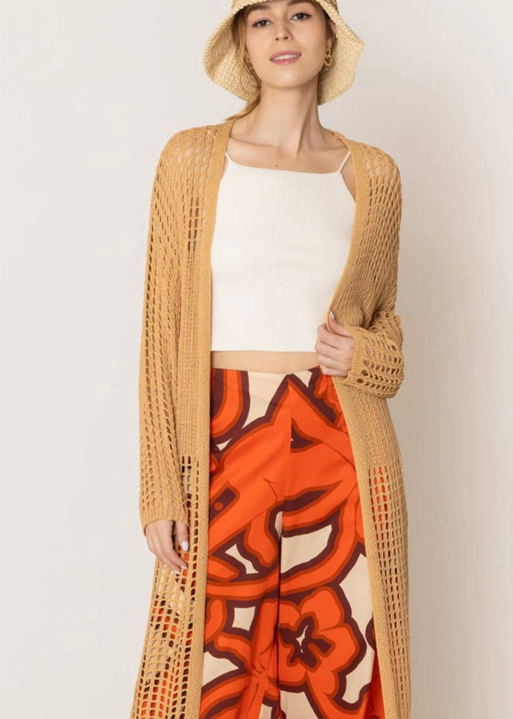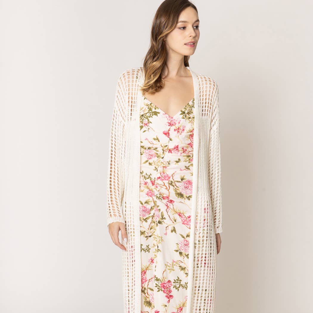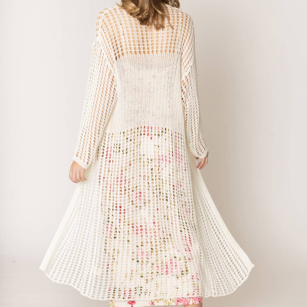 Unleash your inner beach babe with the Camden Crochet Cardigan. This open knit, duster length cardigan is the perfect addition to your vacation wardrobe. Light and airy, it's the perfect cover-up for those breezy beach days. Get ready to soak up the sun in style!