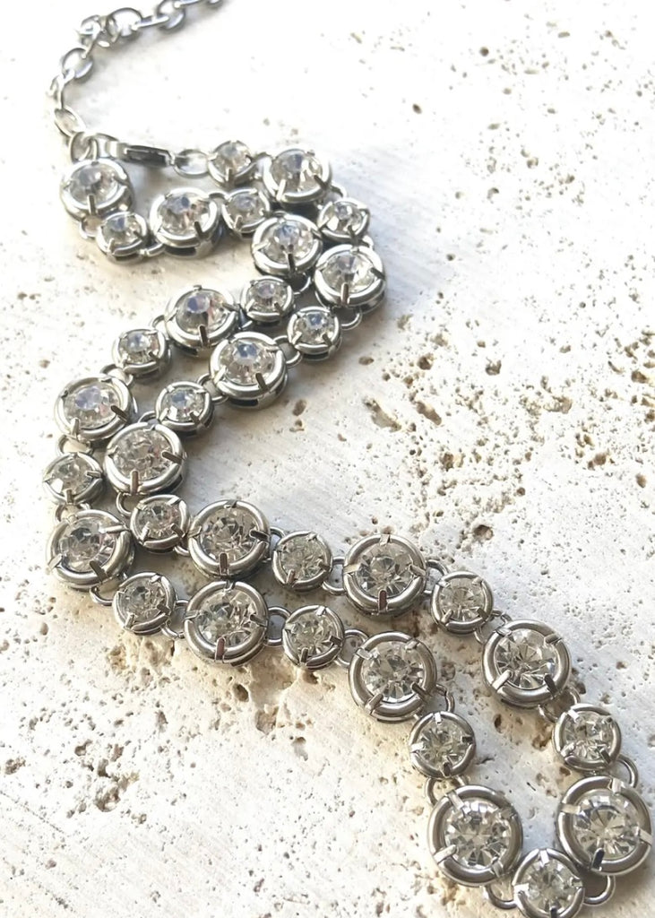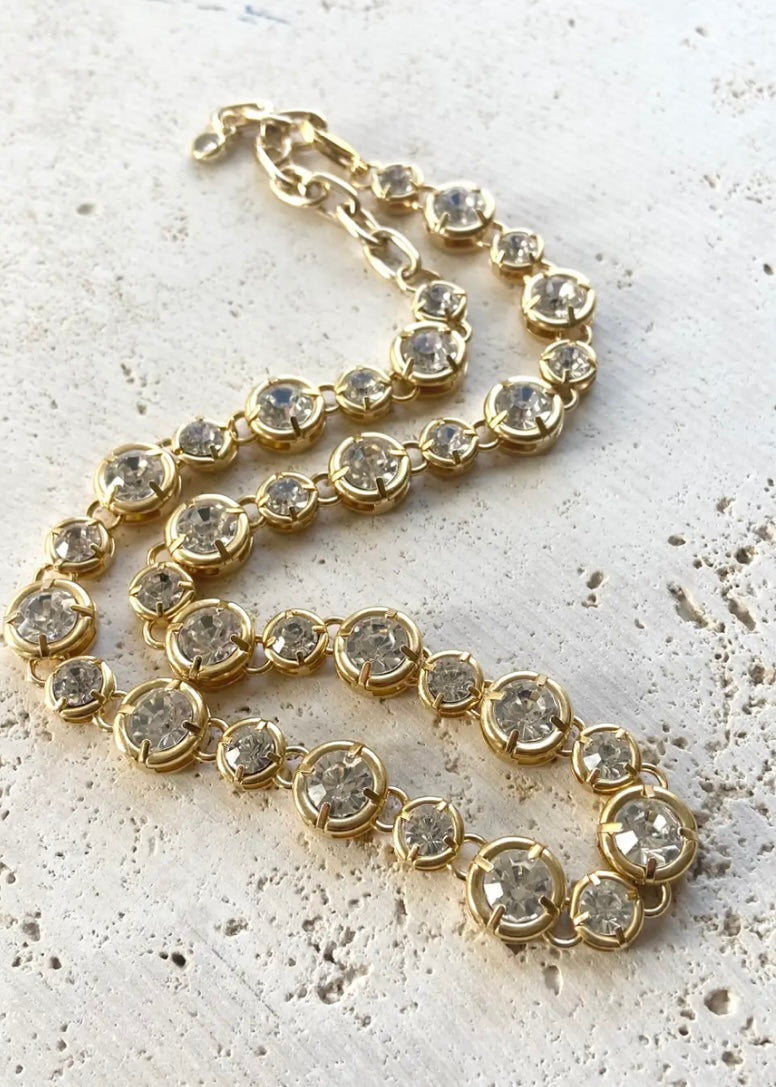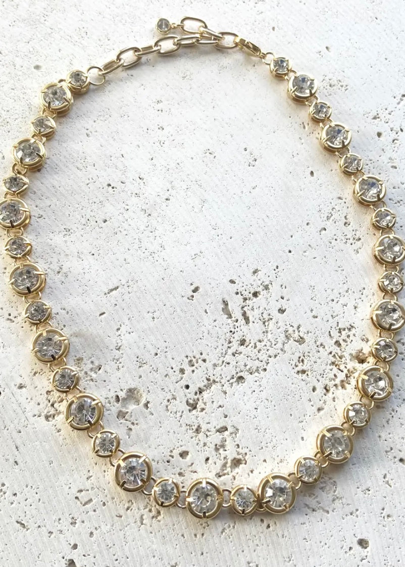 This chunky clear crystal sparkly necklace is great to wear alone or layered with your other favorite pieces.