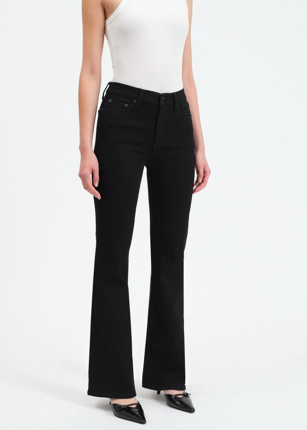 Achieve the model off duty look with our long bootcut in a solid black wash and a flattering mid rise.