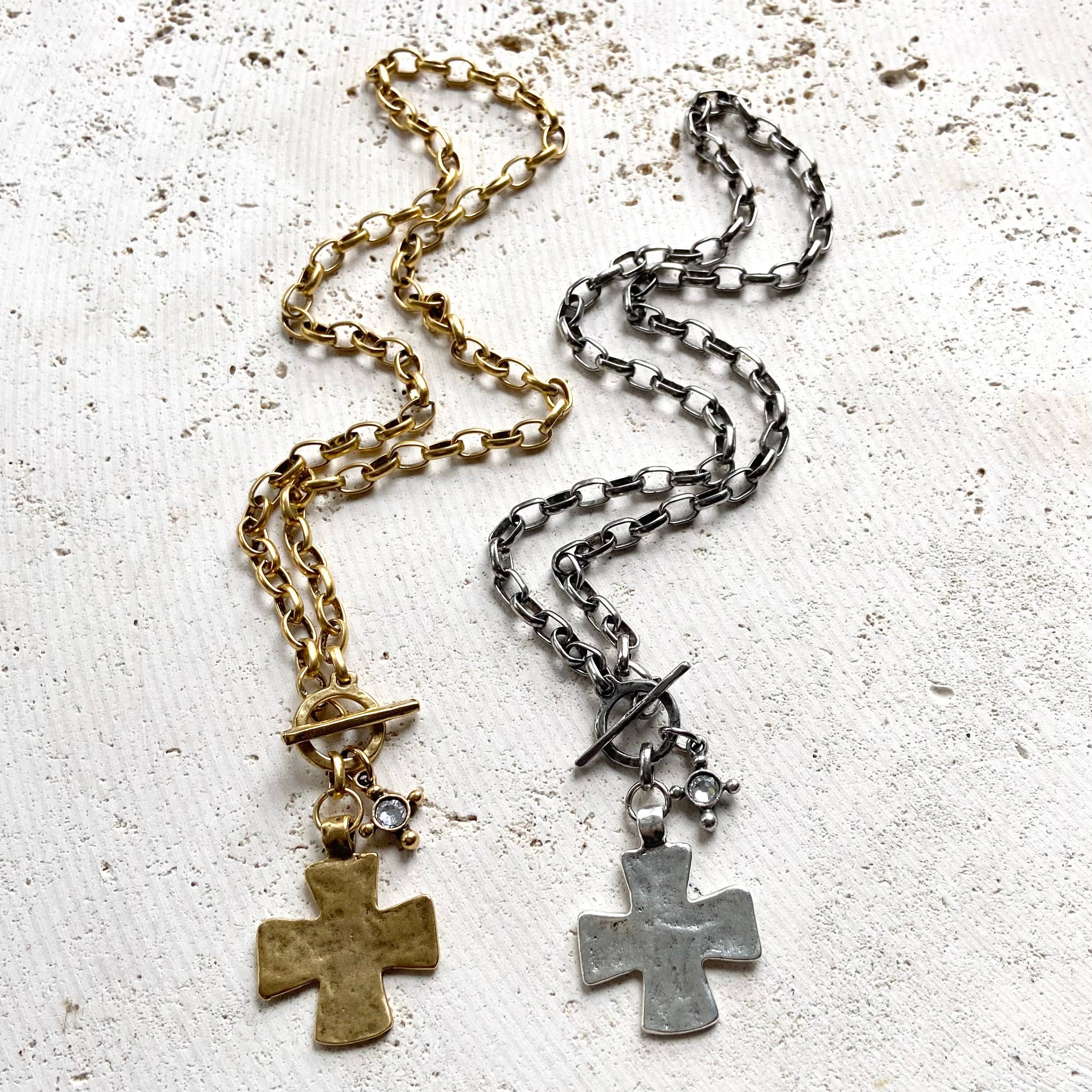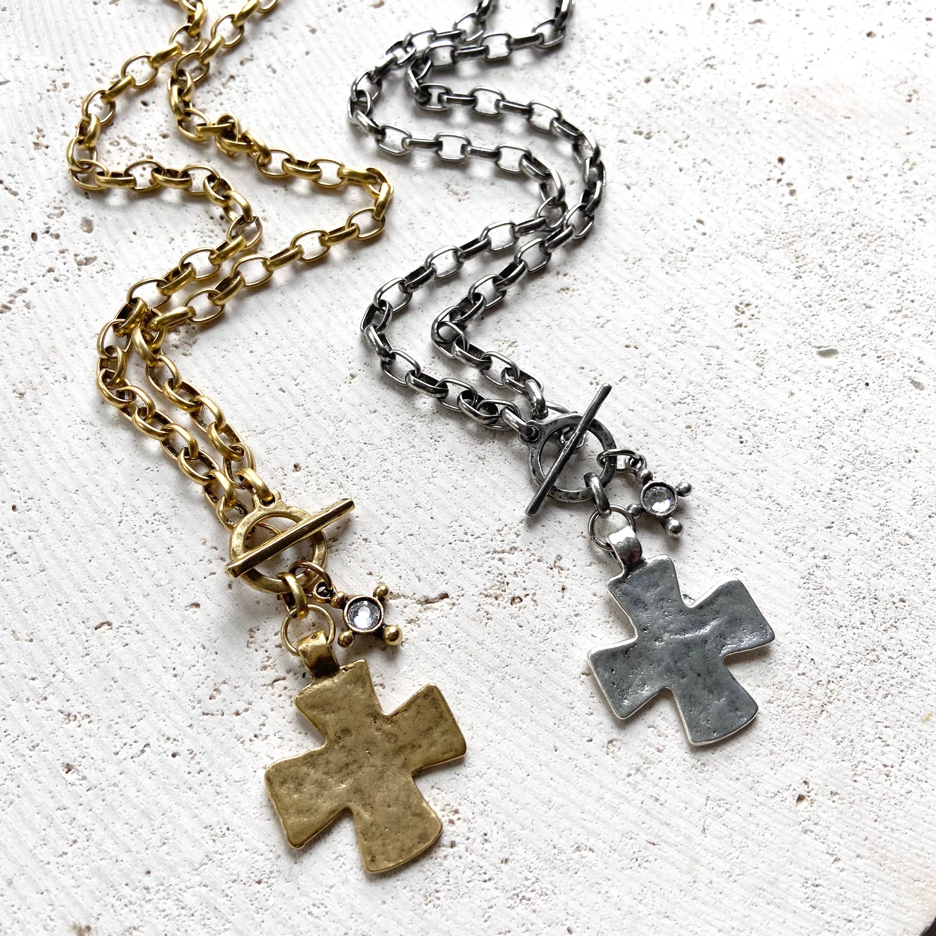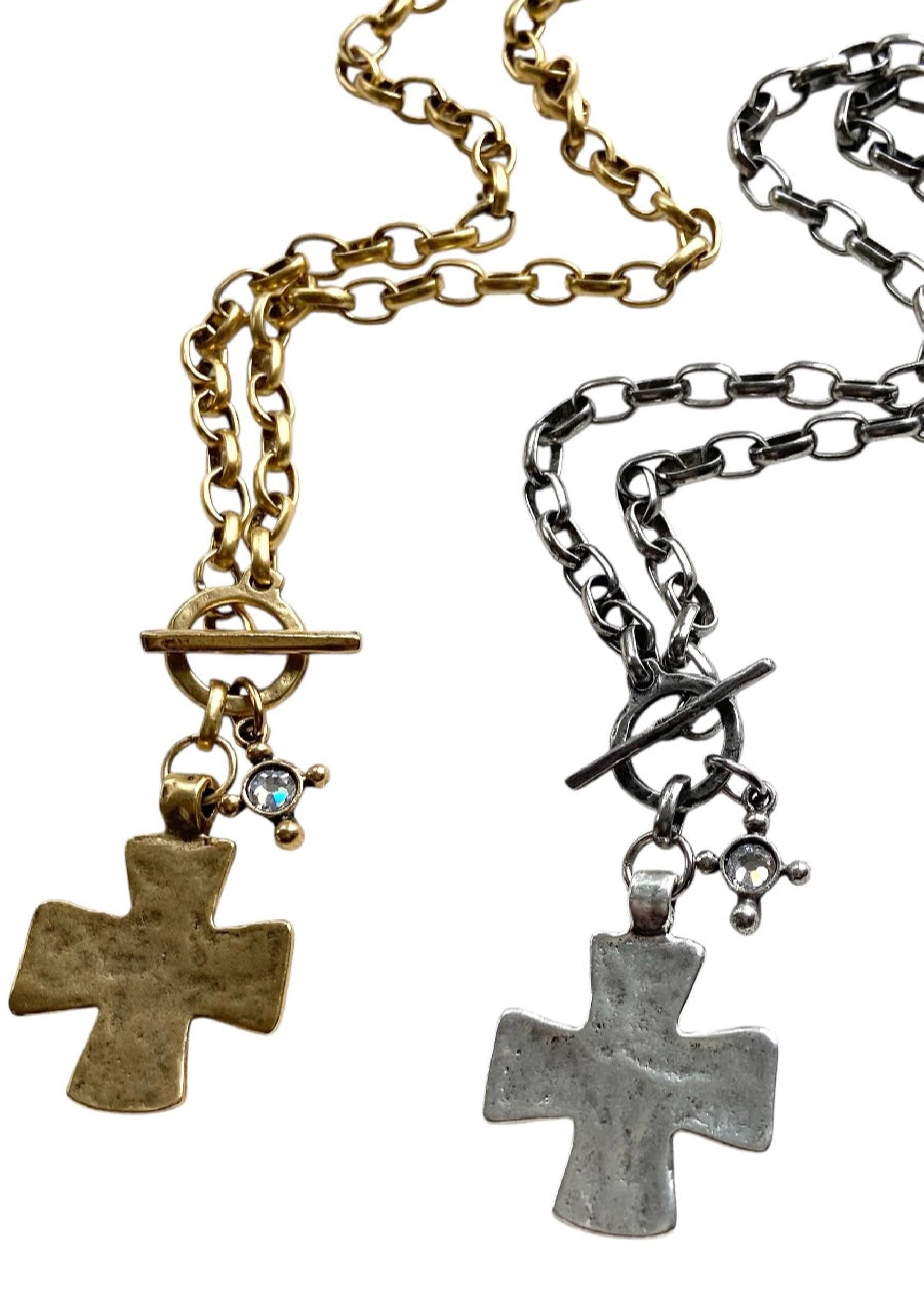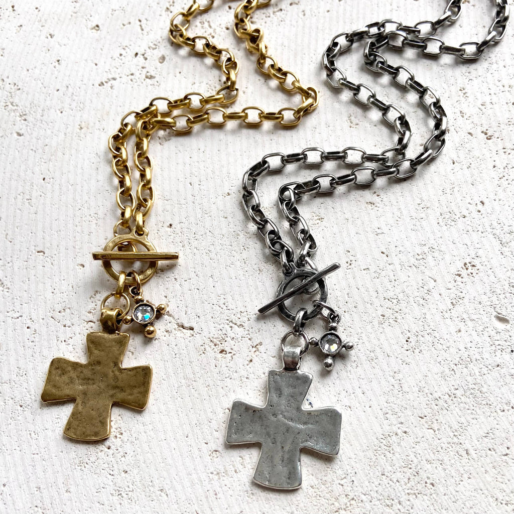 These artisan made hand casted hammered cross necklaces have a beautiful vintage modern vibe