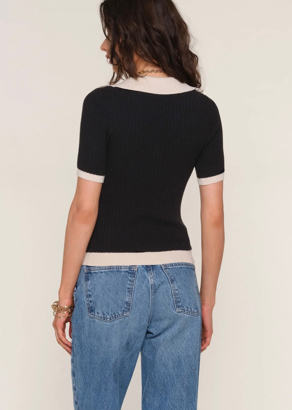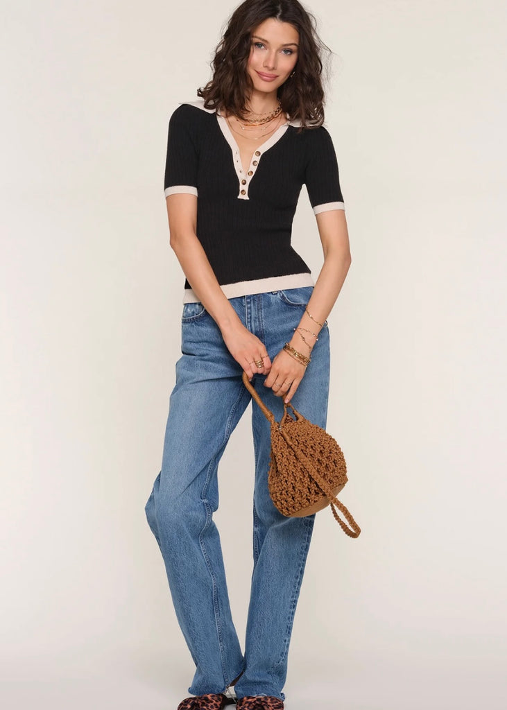 Dolce Top is made from a soft yarn and boasts a flattering, slim fit. It has contrast tipping at the collar, sleeve edge and hem.