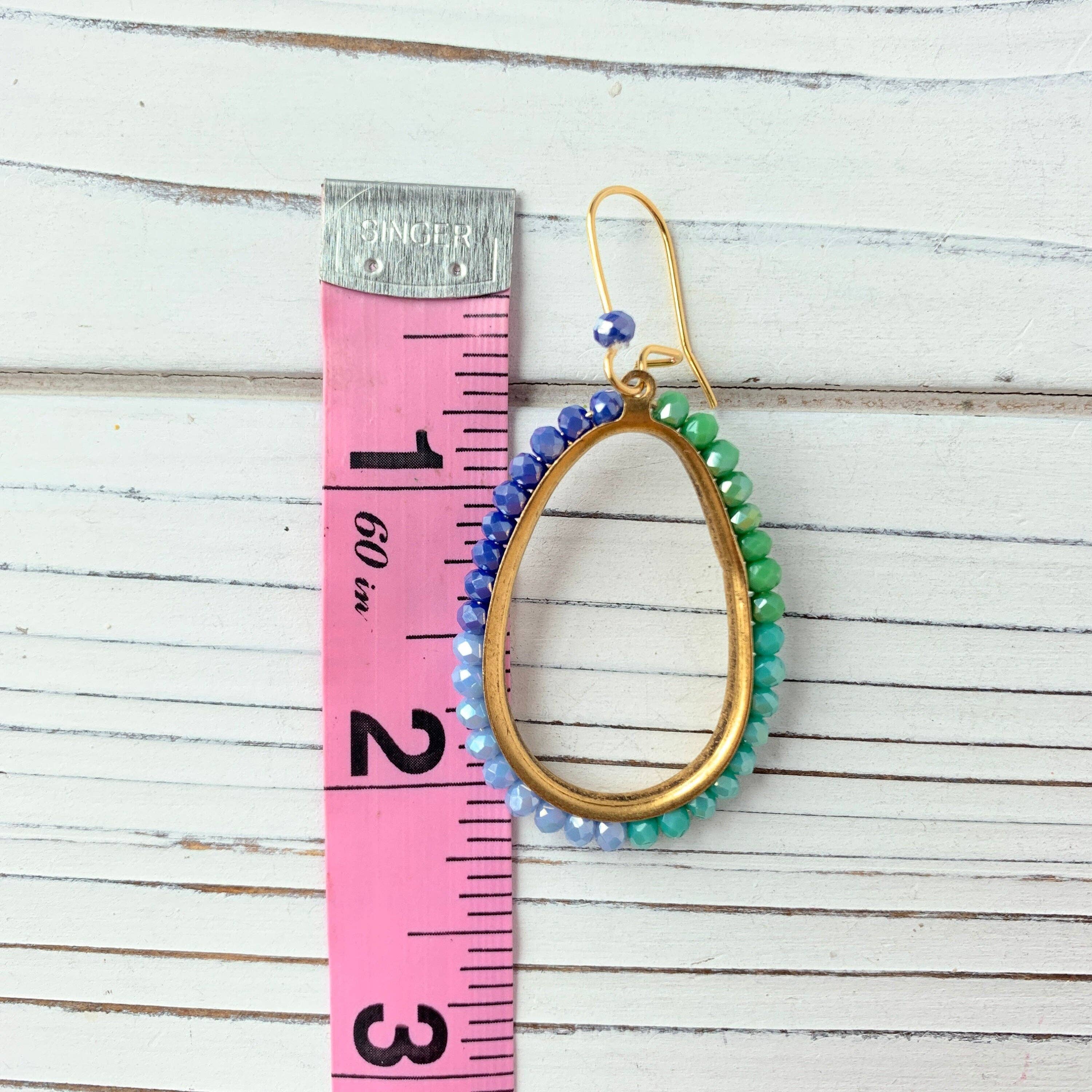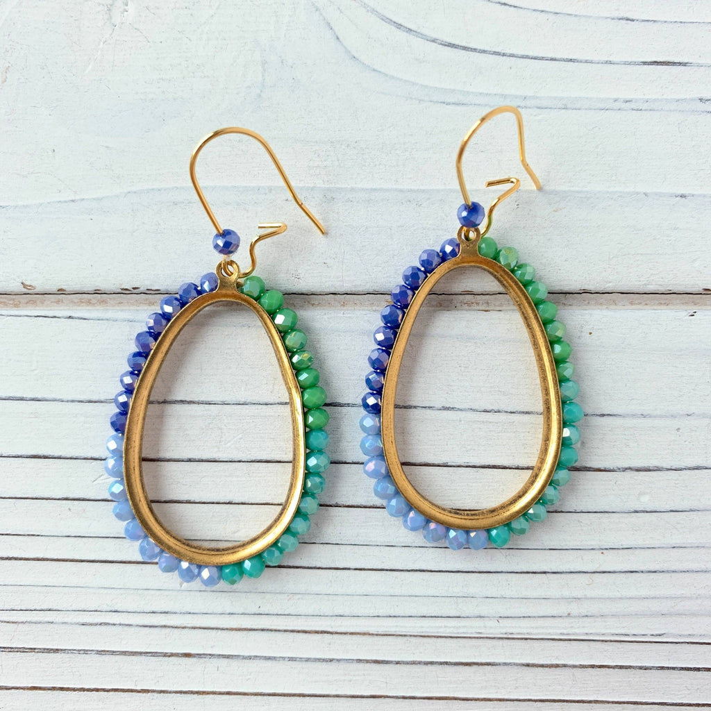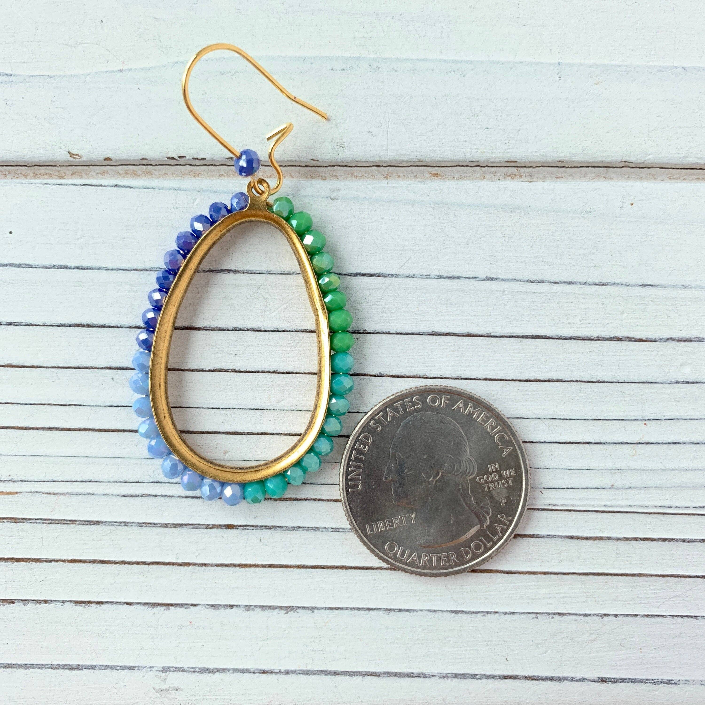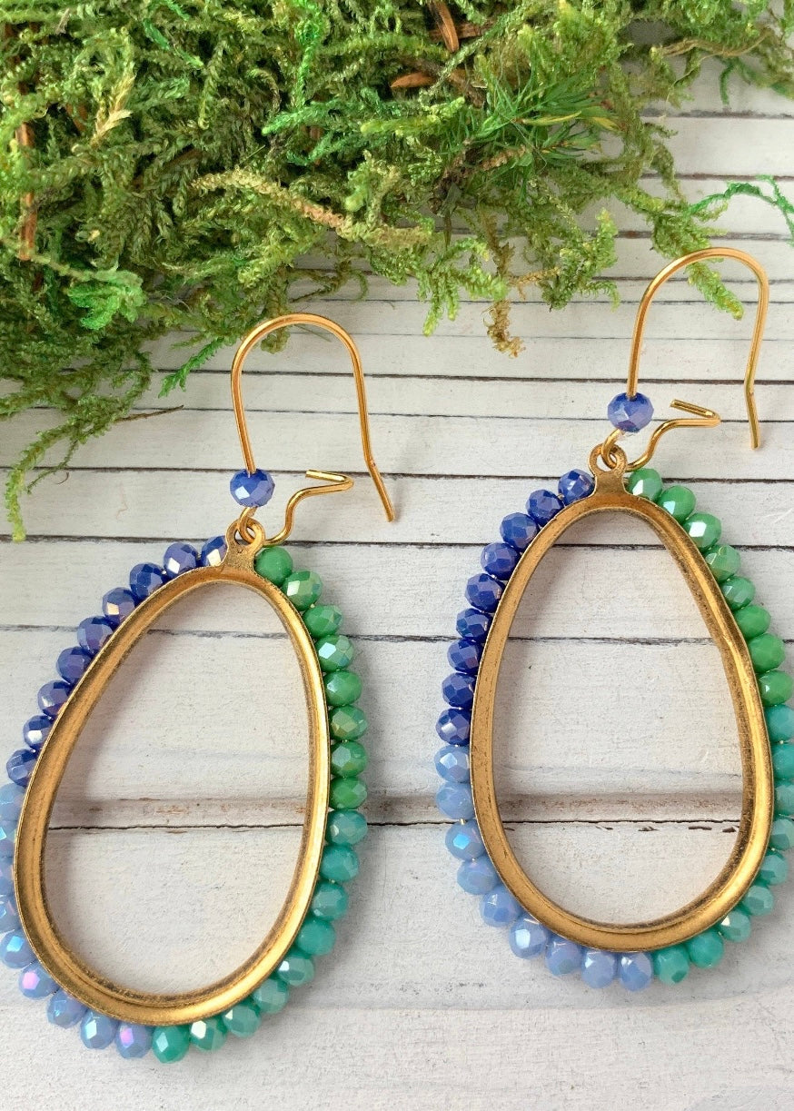Sweet, simple, and very lightweight Lenora egg-shaped earrings with lustrous iridescent beads that add a hint of shimmer to your Spring outfit. Gold plated, nickel-free ear wires that close so you don't have to worry about losing one of these little gems.