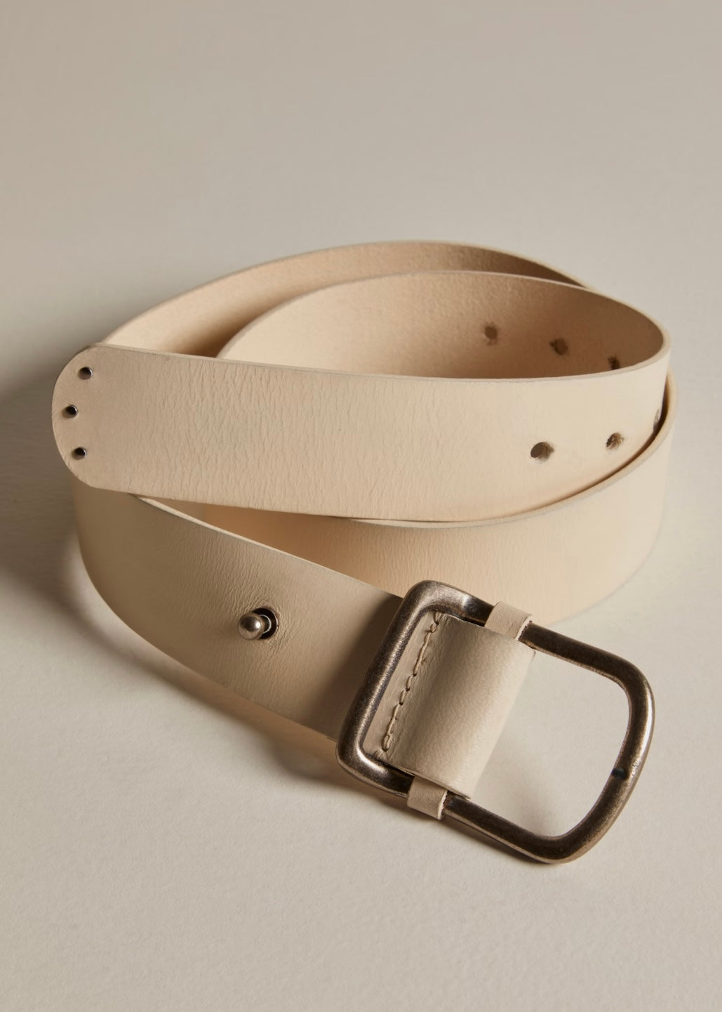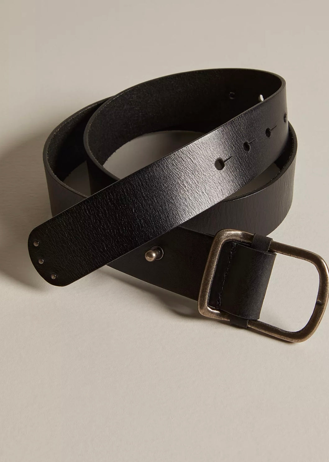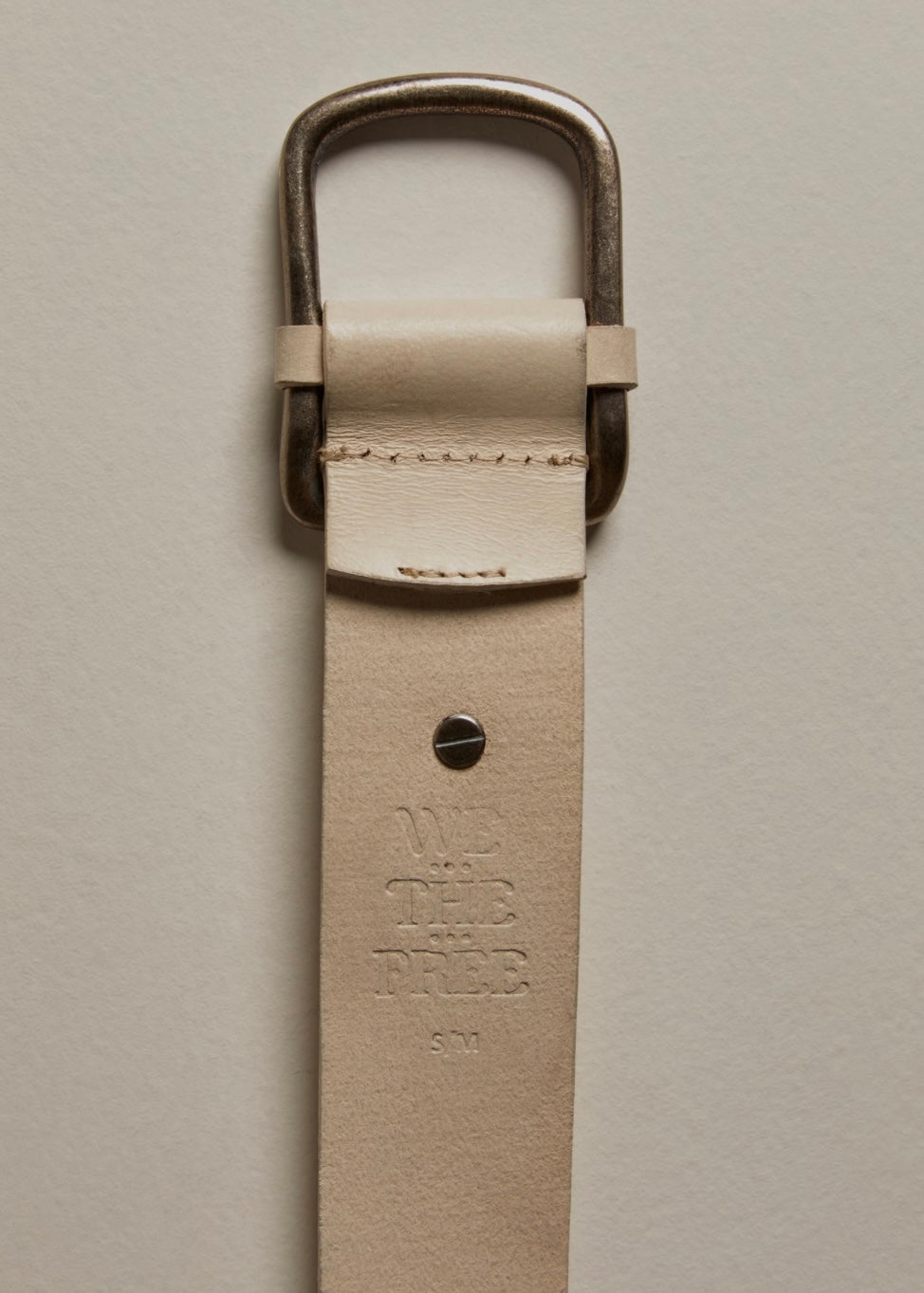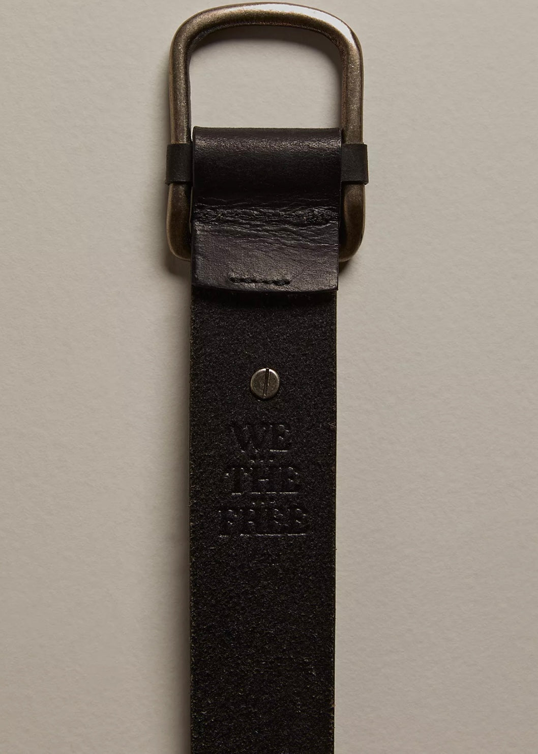 Features: Medium width, leather fabrication, minimalist buckle, antique finish, adjustable prong closure, We The Free branded details
