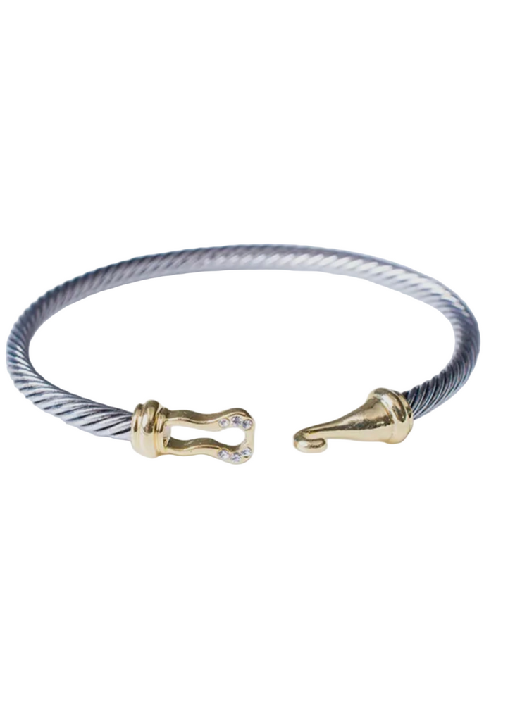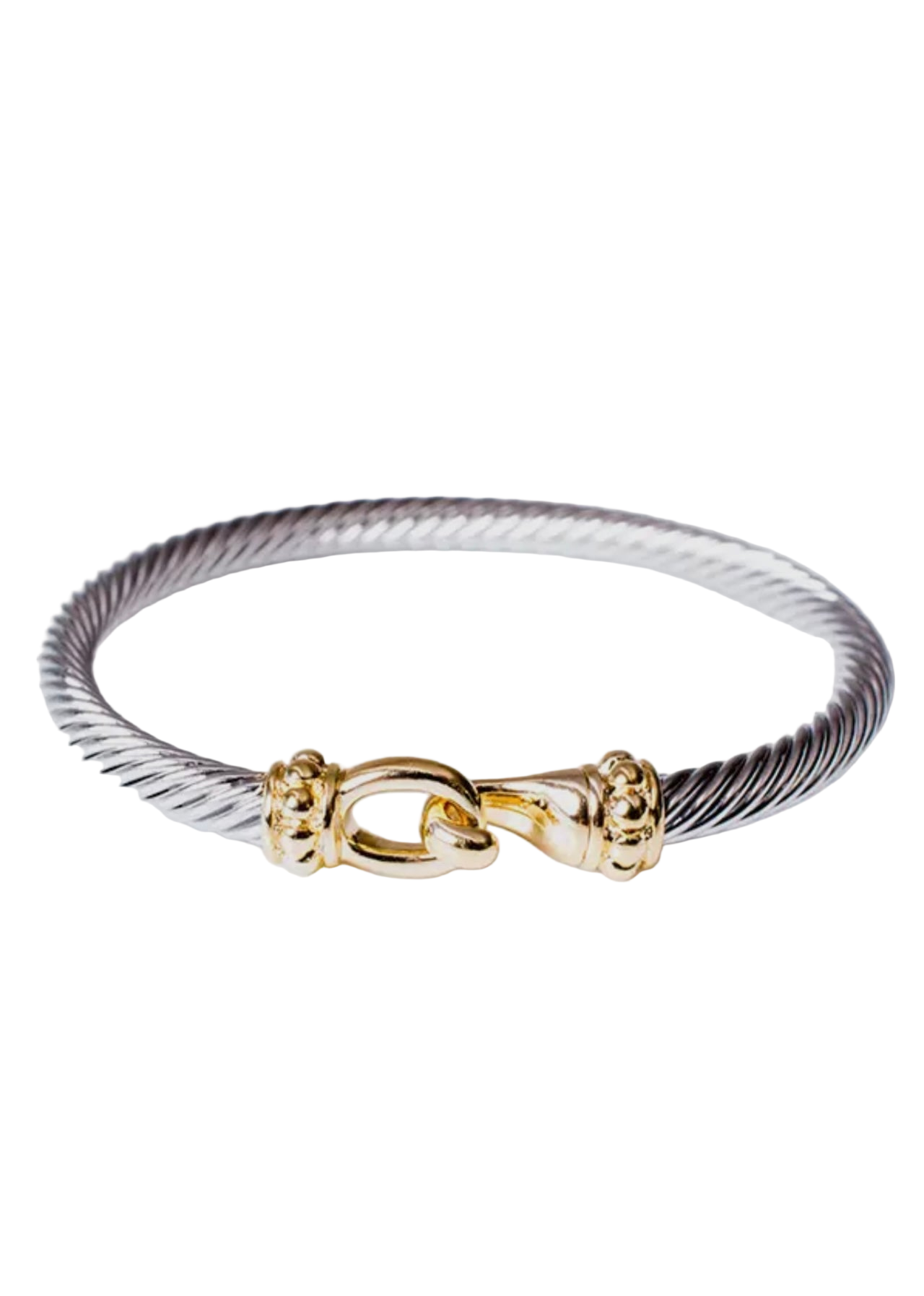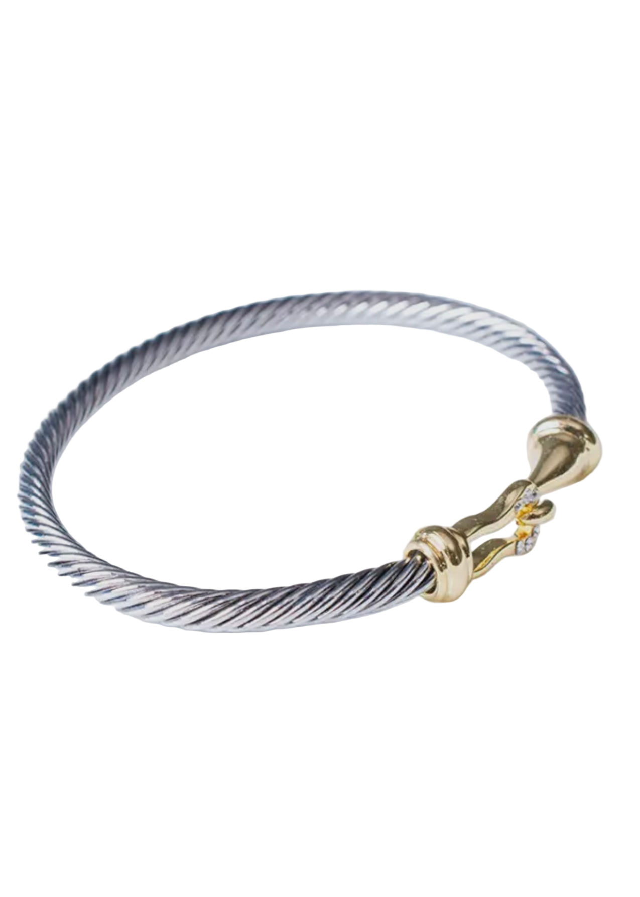 With its 7mm thickness and twisted cable design, this bangle can be worn alone or paired with other complementary hook pieces for a stylish and versatile look