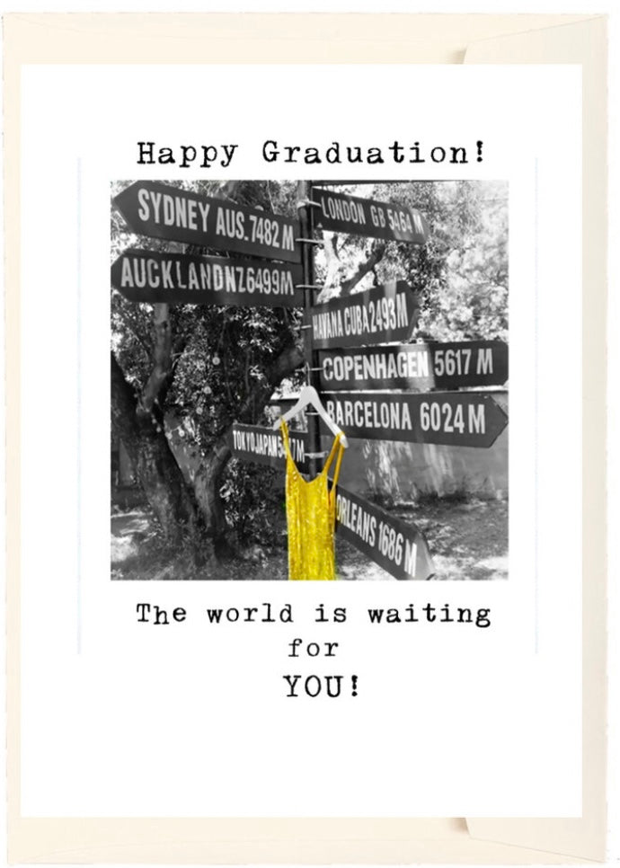 Happy Graduation! The world is waiting for you! Card is backordered and will ship as soon as it is back in stock.
