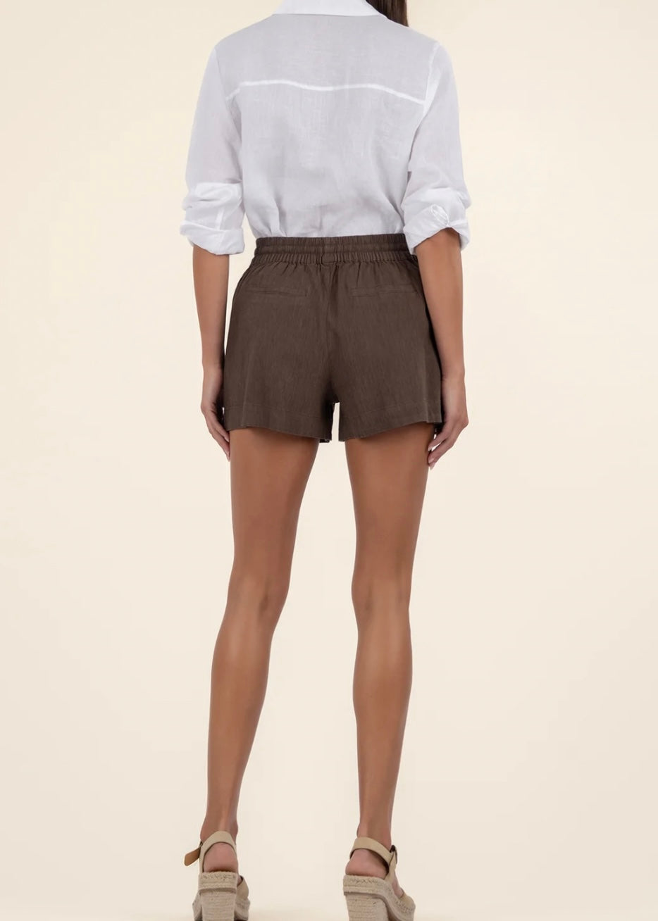 These breezy shorts are made for sunny days, designed in a versatile solid color for easy styling. The soft, flowy fabric and drawstring waist provide all-day comfort, while the relaxed fit keeps the look laid-back. Finished with side pockets, back welt pockets, and button details on the side hem for an extra touch of style and practicality.