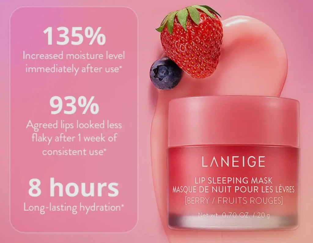 This iconic, fan-fave pout perfector is a special intensive-care mask for lips. With nourishing Berry Fruit Complex™, Murumuru seed and Shea butter, this hydrating lip mask delivers intense moisture and antioxidants while you sleep for visibly smoother, baby-soft lips in the AM.
