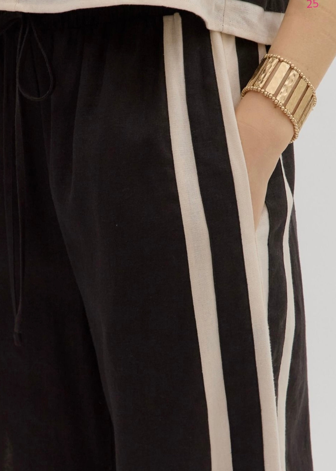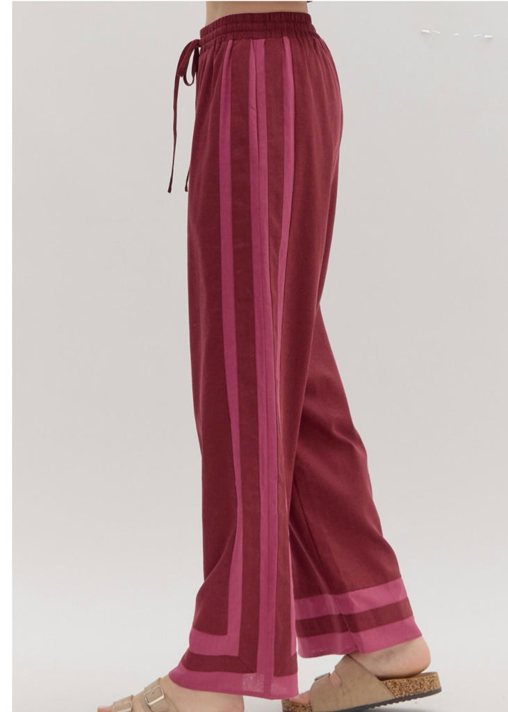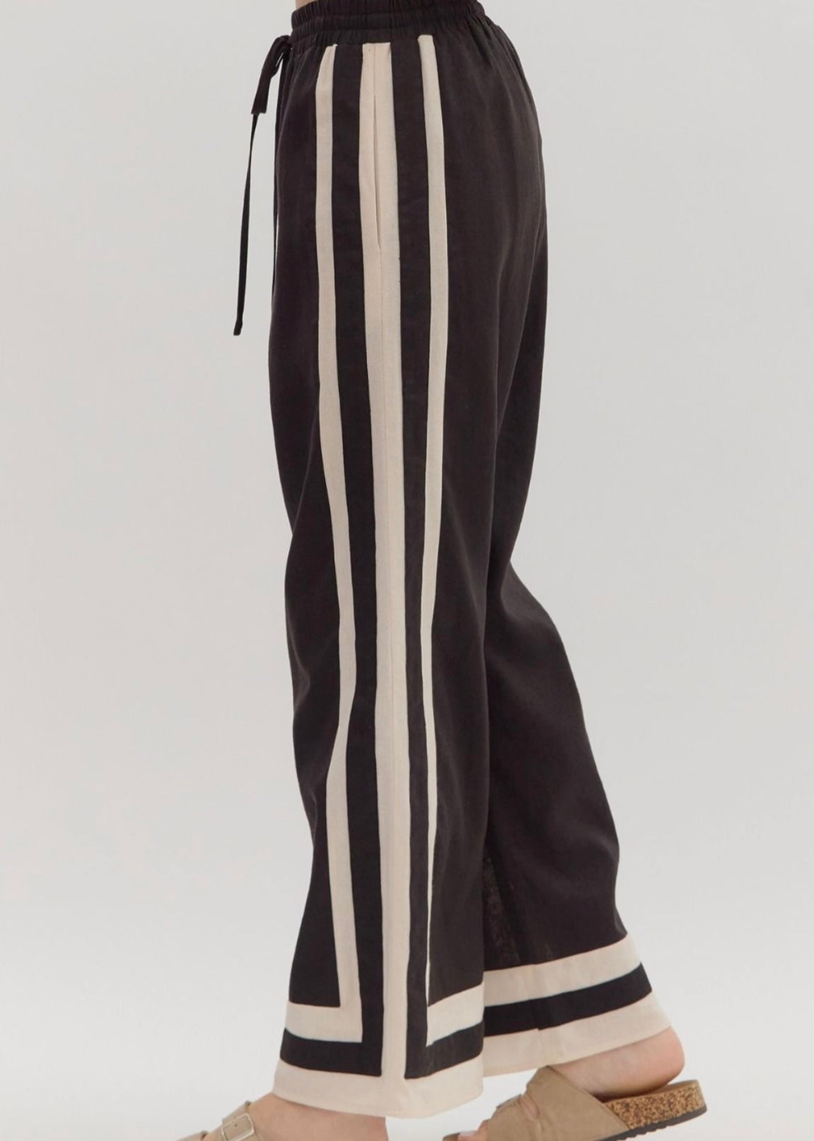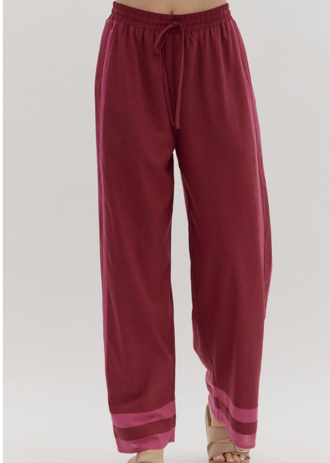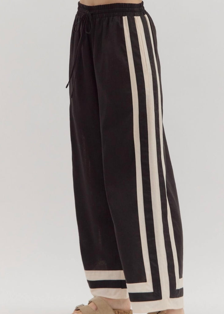 These solid high waist wide leg pants feature a chic contrast accented abstract border, and a drawstring adjustable waistband for comfort. Lined and non-sheer, these lightweight woven pants are the perfect pant for a day, evening or beach look. Complete the look with the Nora Tank for a stylish matching set.
