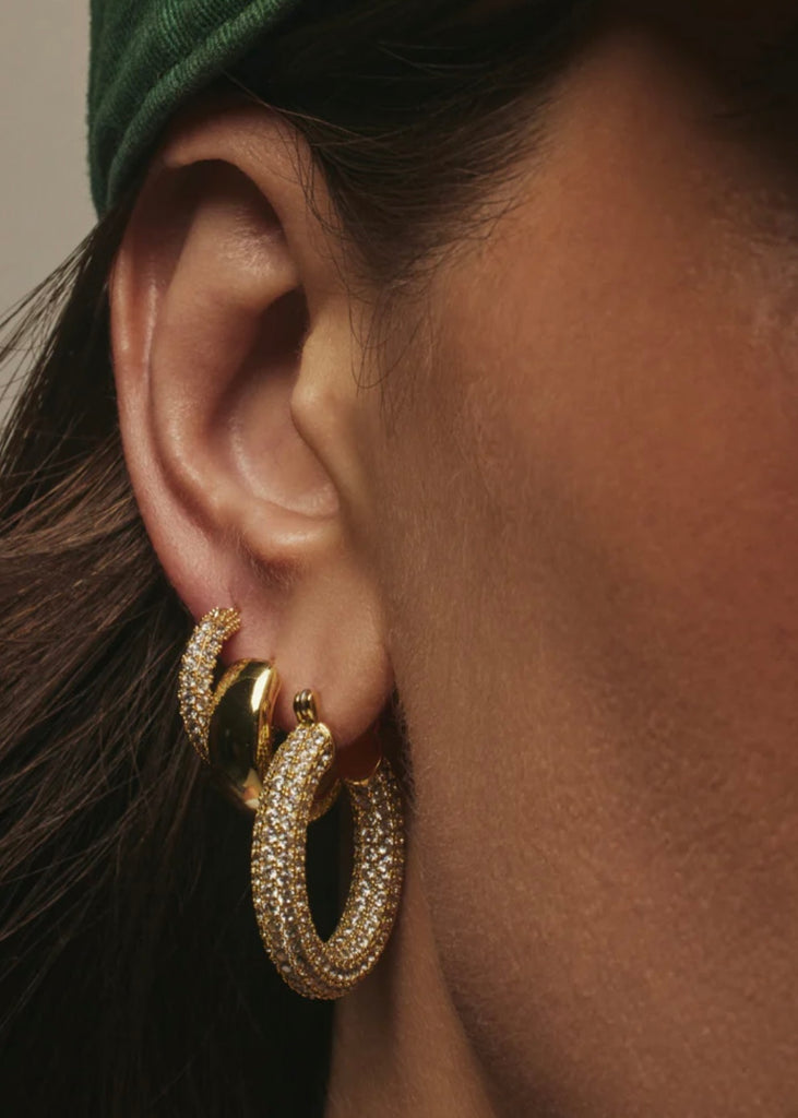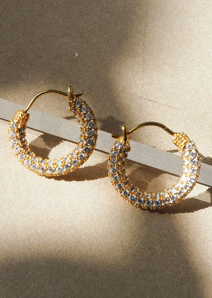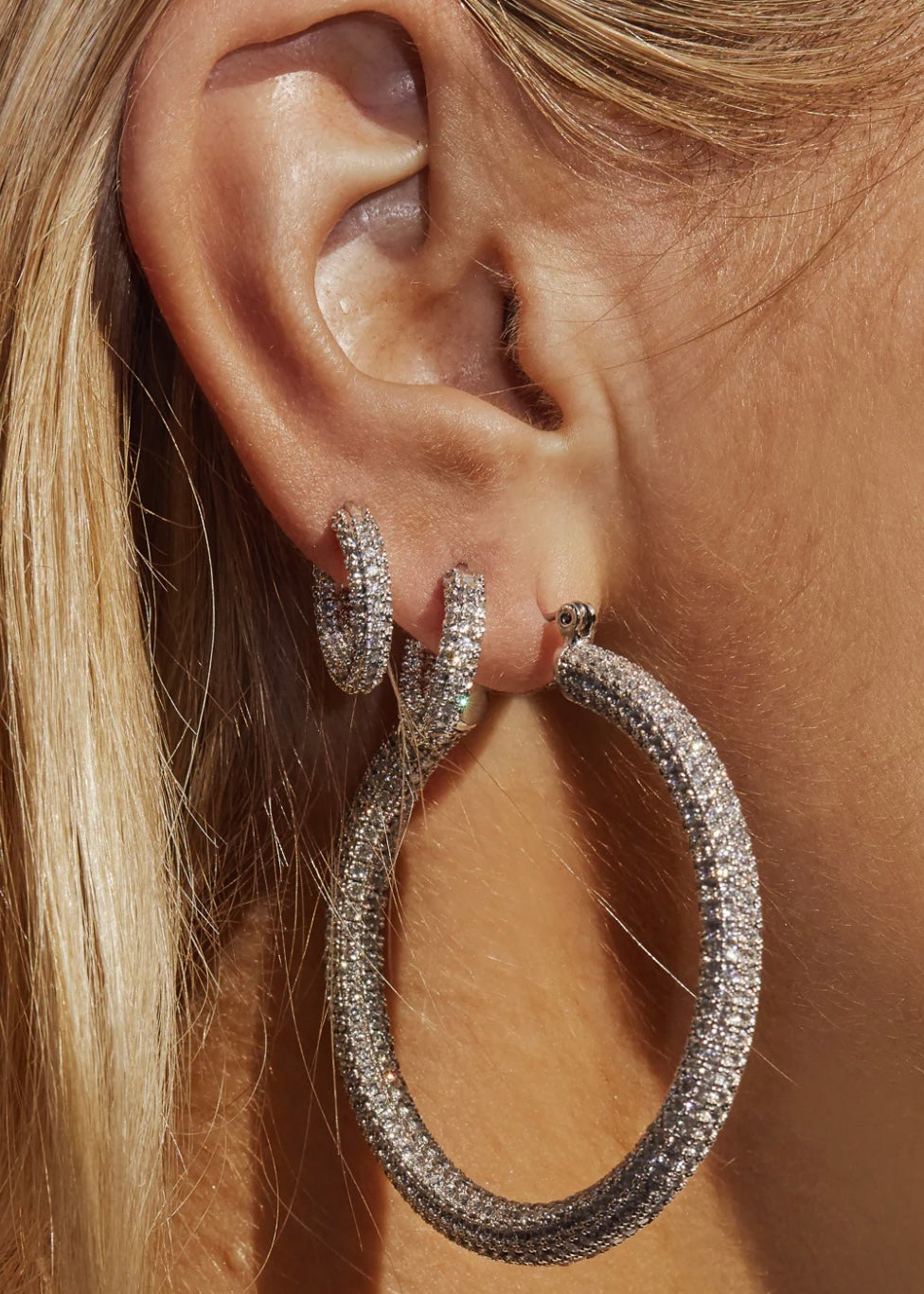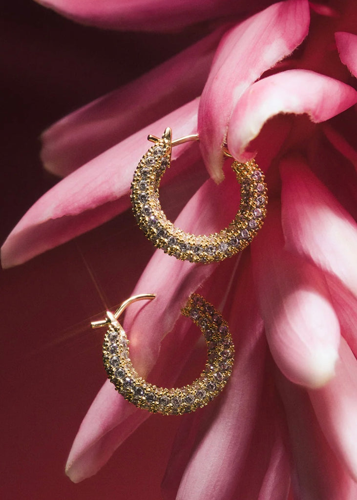 • A mini pave version of our best-selling pair of metal tube hoops that are perfect for everyday wear