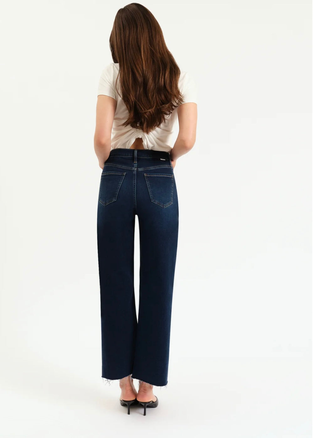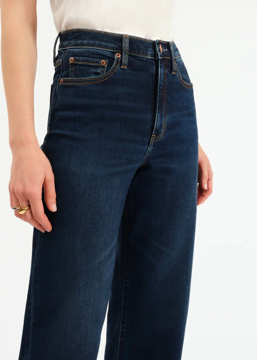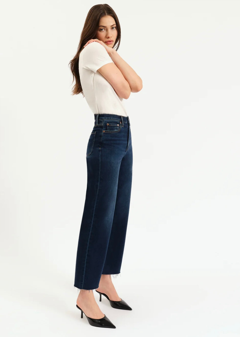 The Pleaser in Magic Hour is our tried and true high rise wide ankle in a rich indigo. Constructed from our Hug fabric, this jean is flexible enough to hug your body, yet heavy enough to cinch you in.