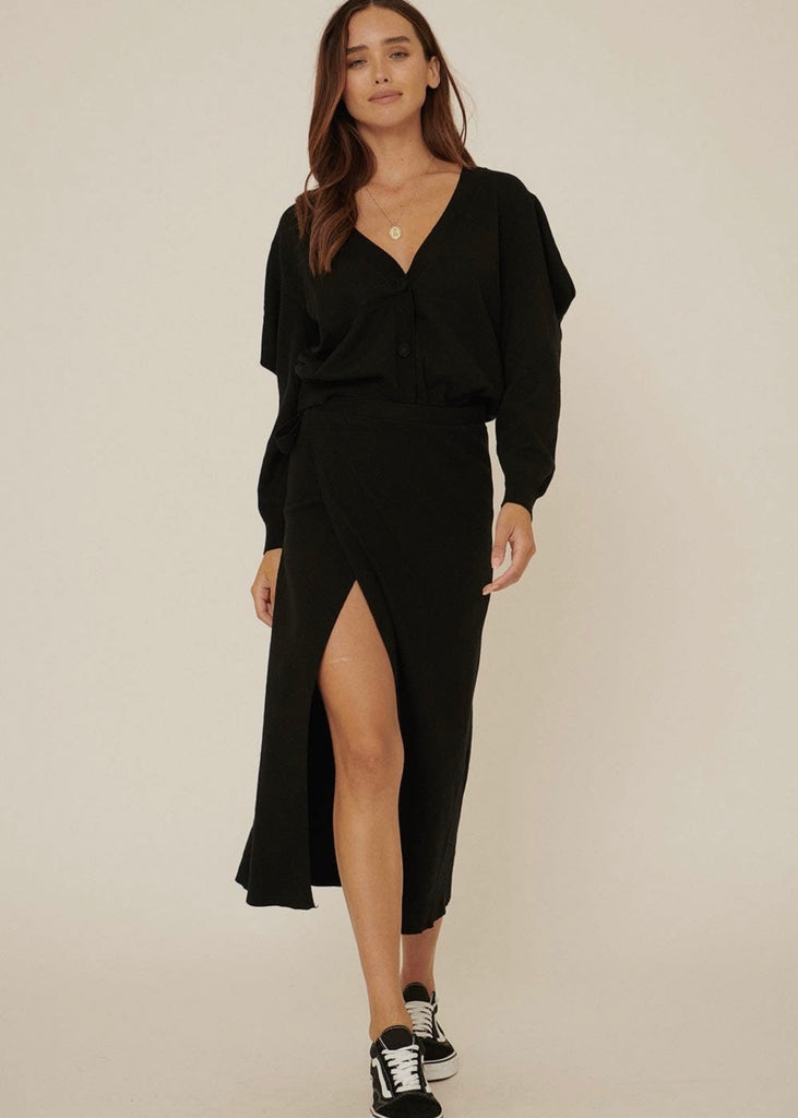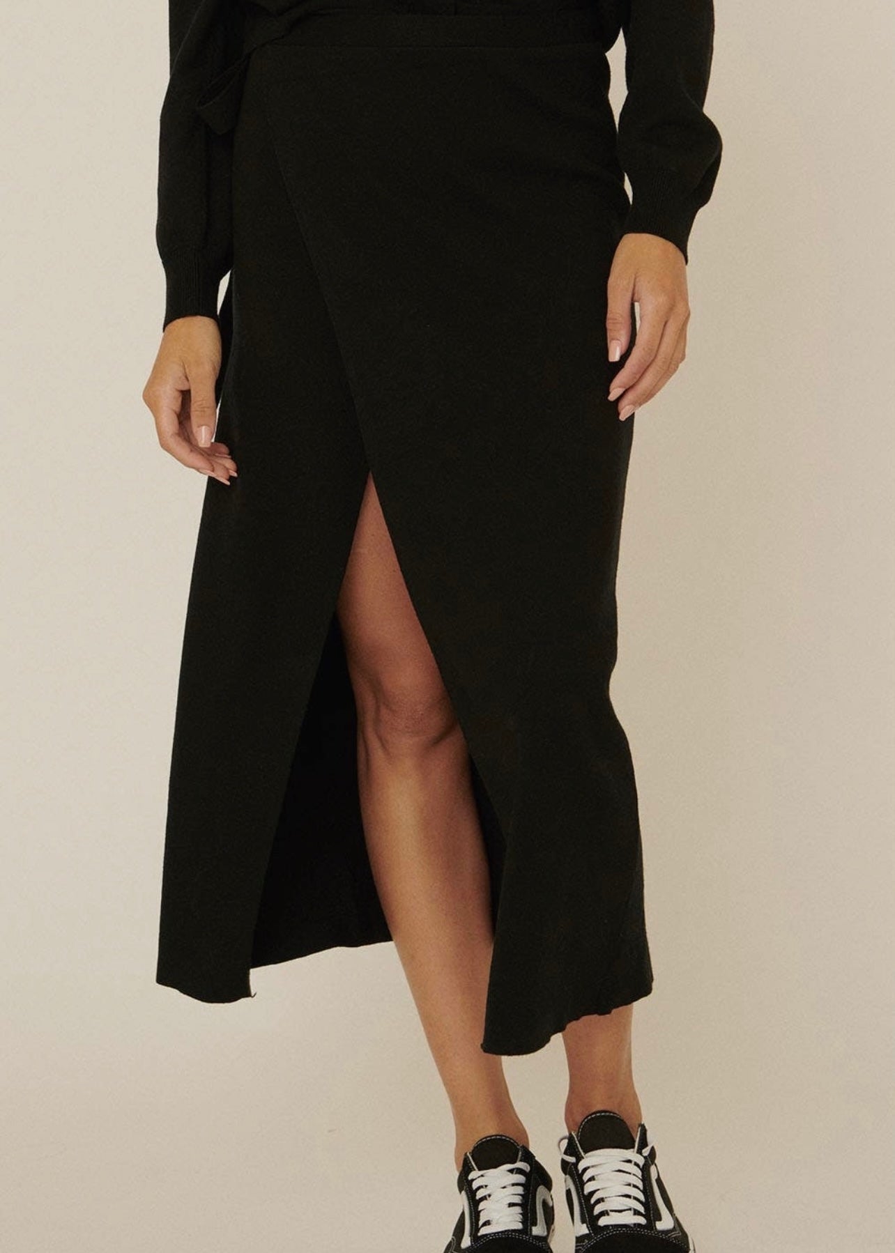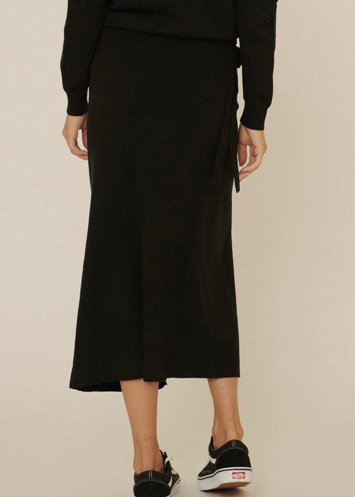 This Solid Waist Tie Wrap Sweater Midi Skirt features an elegant solid knit midi design and waist tie that gives a comfortable, relaxed fit that is calf length. Enjoy stylish comfort while looking modern and chic.