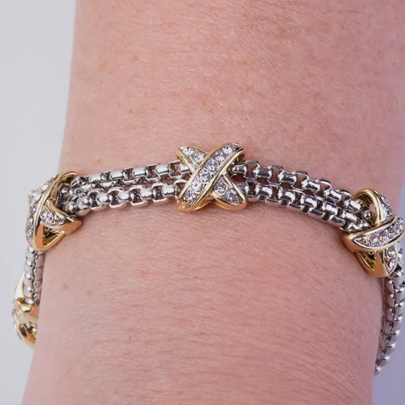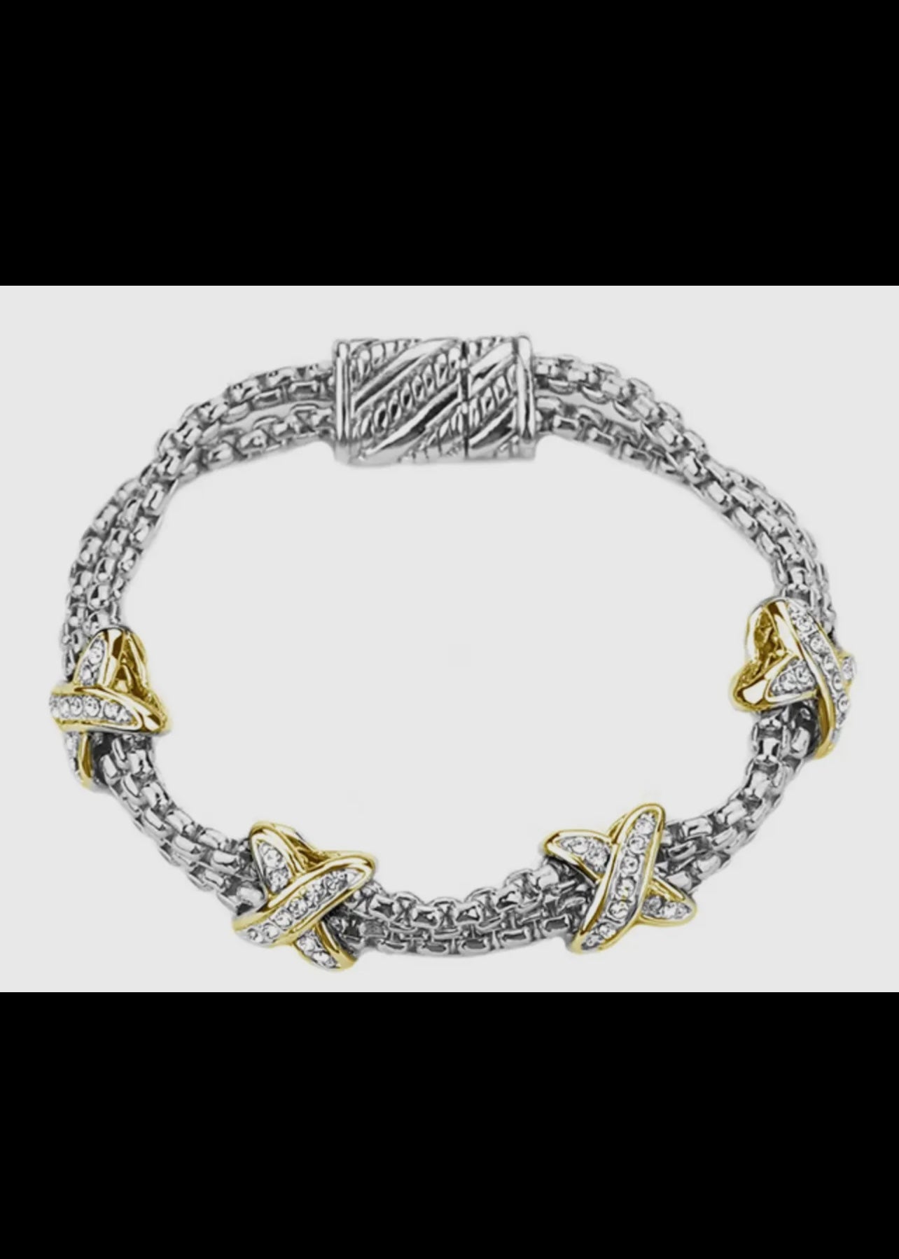 The Station X Bracelet features two-tone rhodium plating with a gold Crystal X Station and magnetic closure