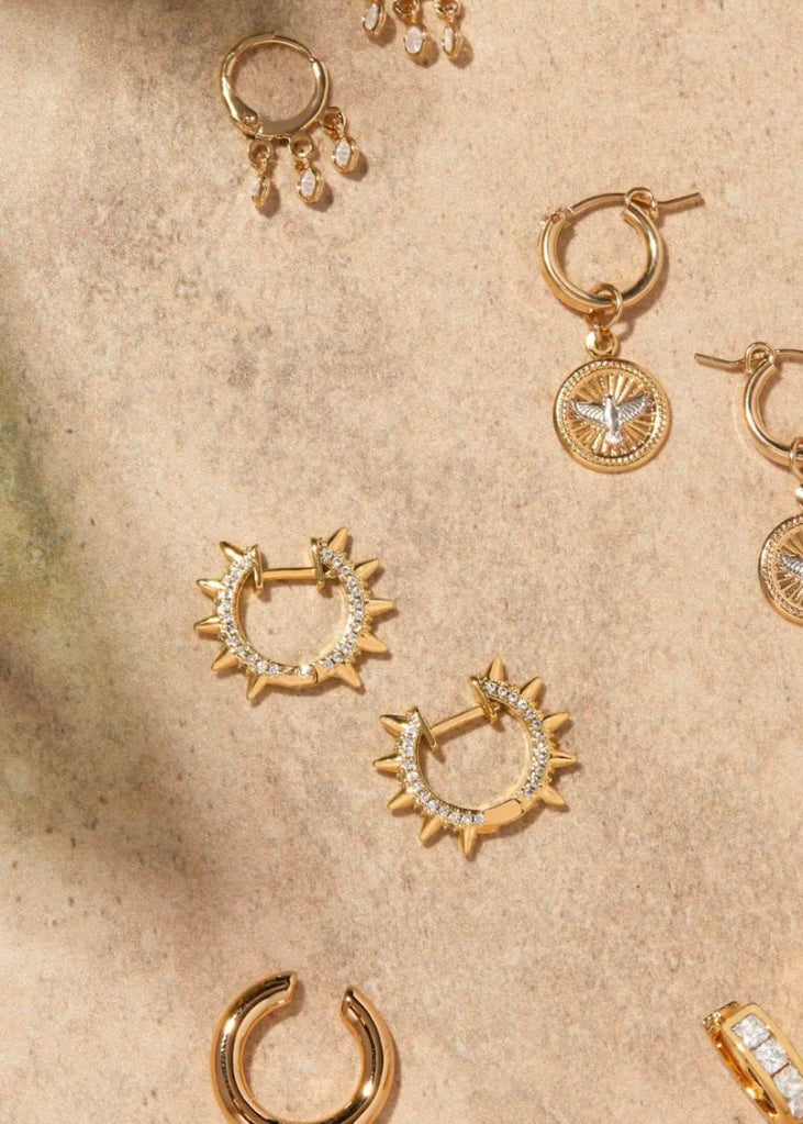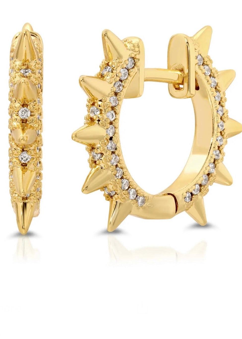 Petite, spike huggie hoops shimmer with clear CZ's. Great for your everyday ear layering game.