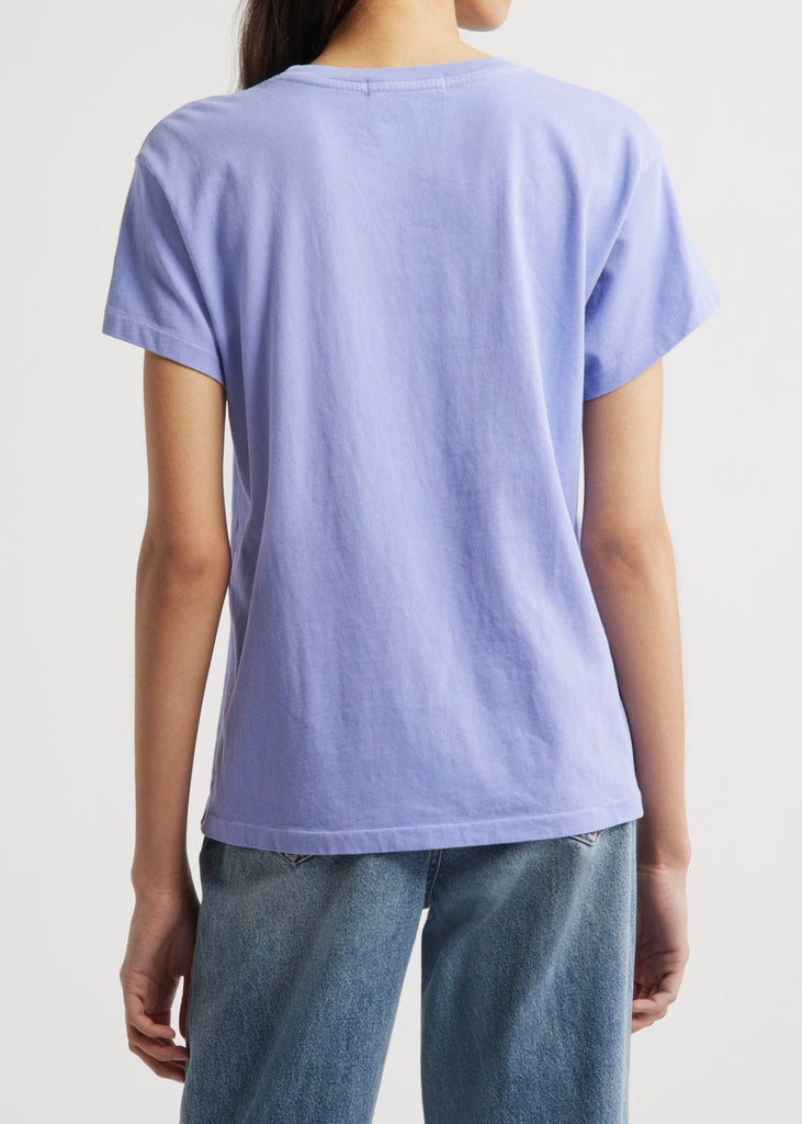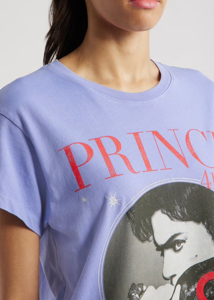 The late Prince lives on in a tour image stamped at the center of this cotton-jersey T-shirt rendered in a misty purple hue.