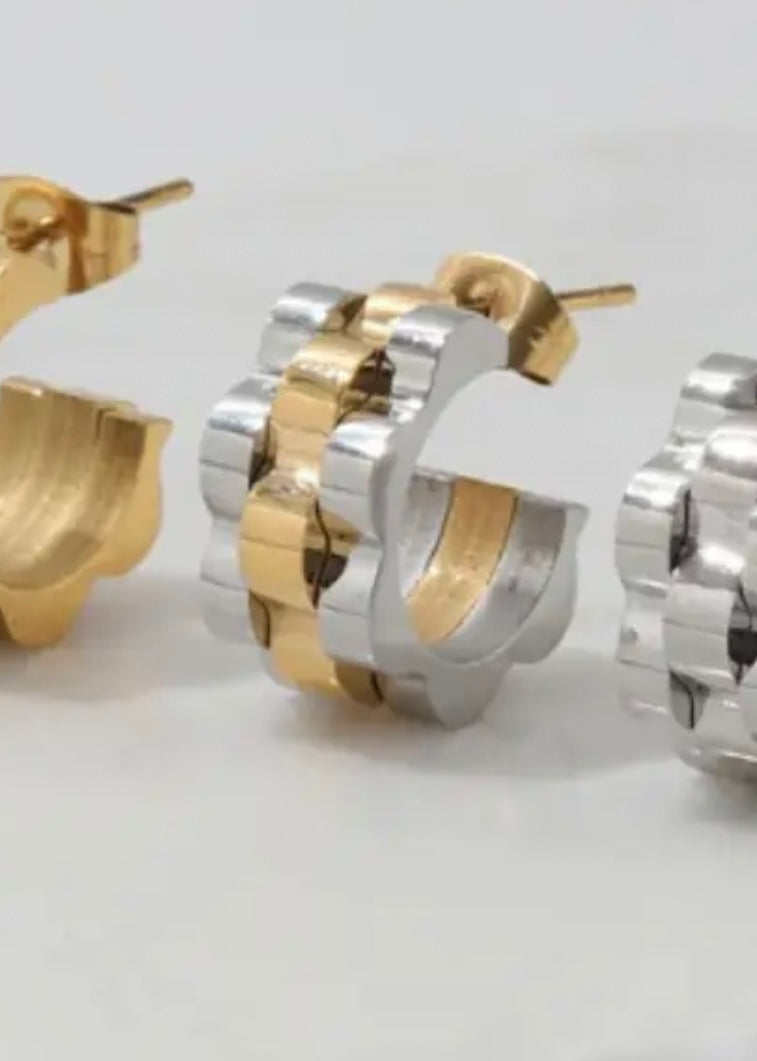 Introducing our Watch Band Earrings - a fusion of thick watch band link and perfect hoop design. Made from high-quality steel and dipped in 14k Gold for a lasting lifetime. Hypoallergenic and waterproof, these lightweight hoops are designed to fit snugly without sagging. With a heavily layered gold and Ep coating, they're also scratch-resistant. Upgrade your earring game!